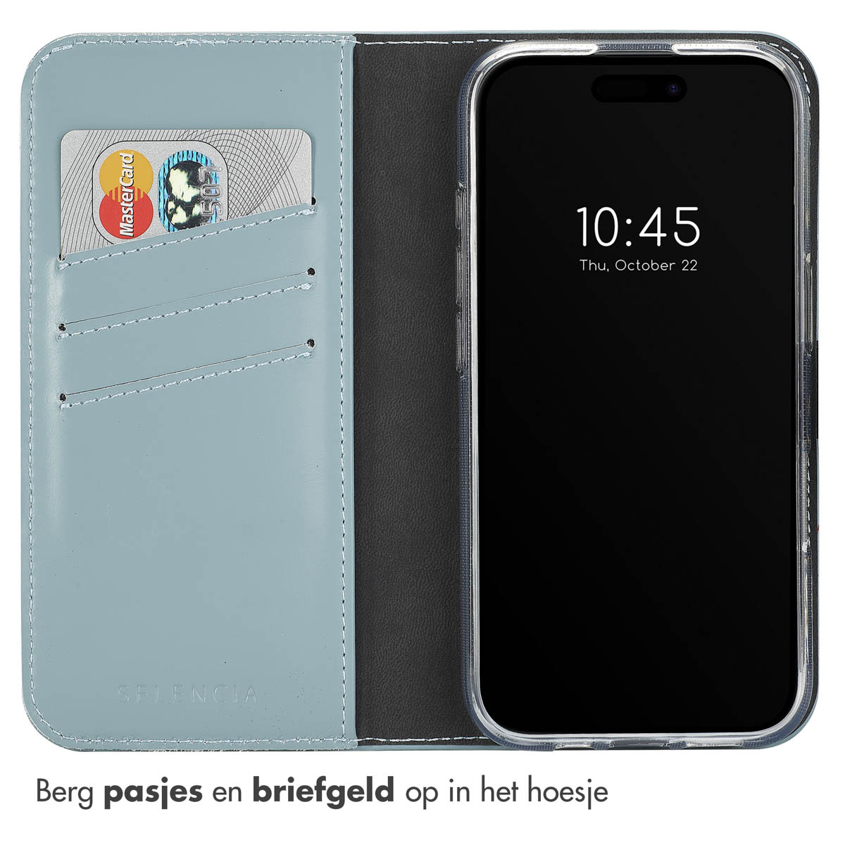 Selencia Echt Lederen Bookcase, Apple, Apple iPhone 16 Plus, Lichtblauw