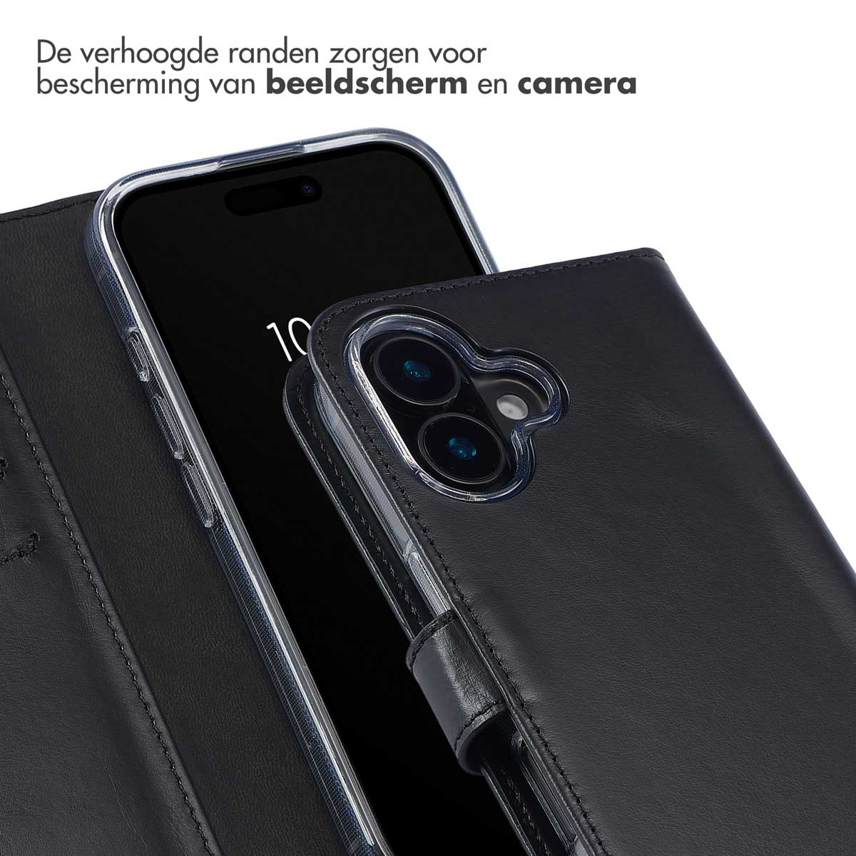 Echt Leren Bookcase Apple iPhone 16 Plus - Zwart