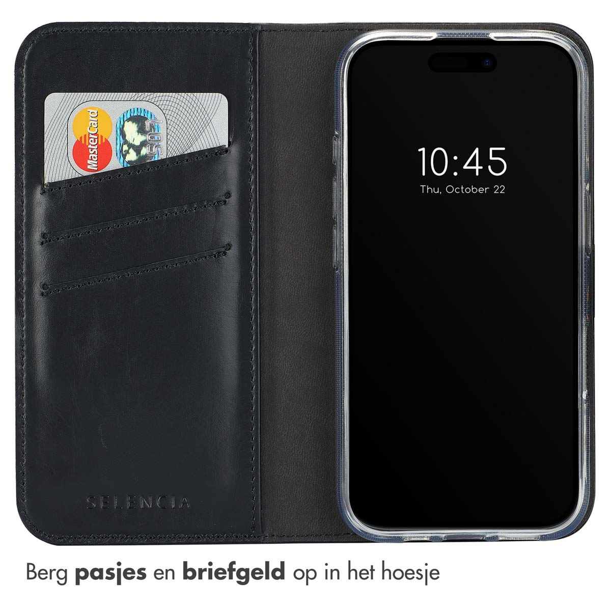 Selencia Echt Lederen Bookcase, Apple, Apple iPhone 16 Plus, Zwart