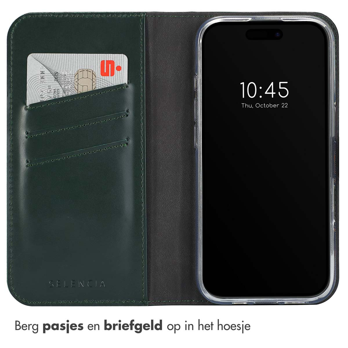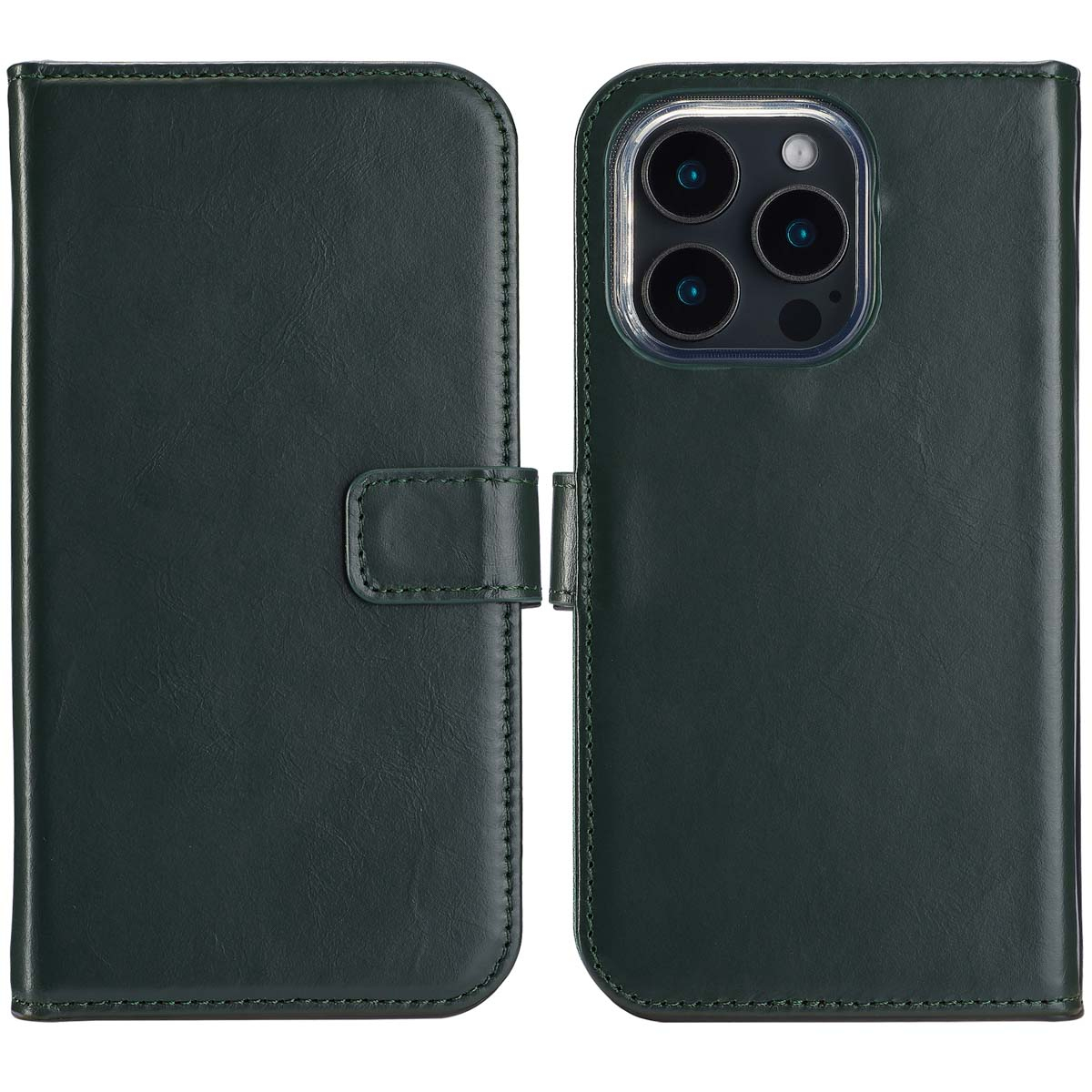 Selencia Echt Lederen Bookcase, Apple, Apple iPhone 16 Pro Max, Groen