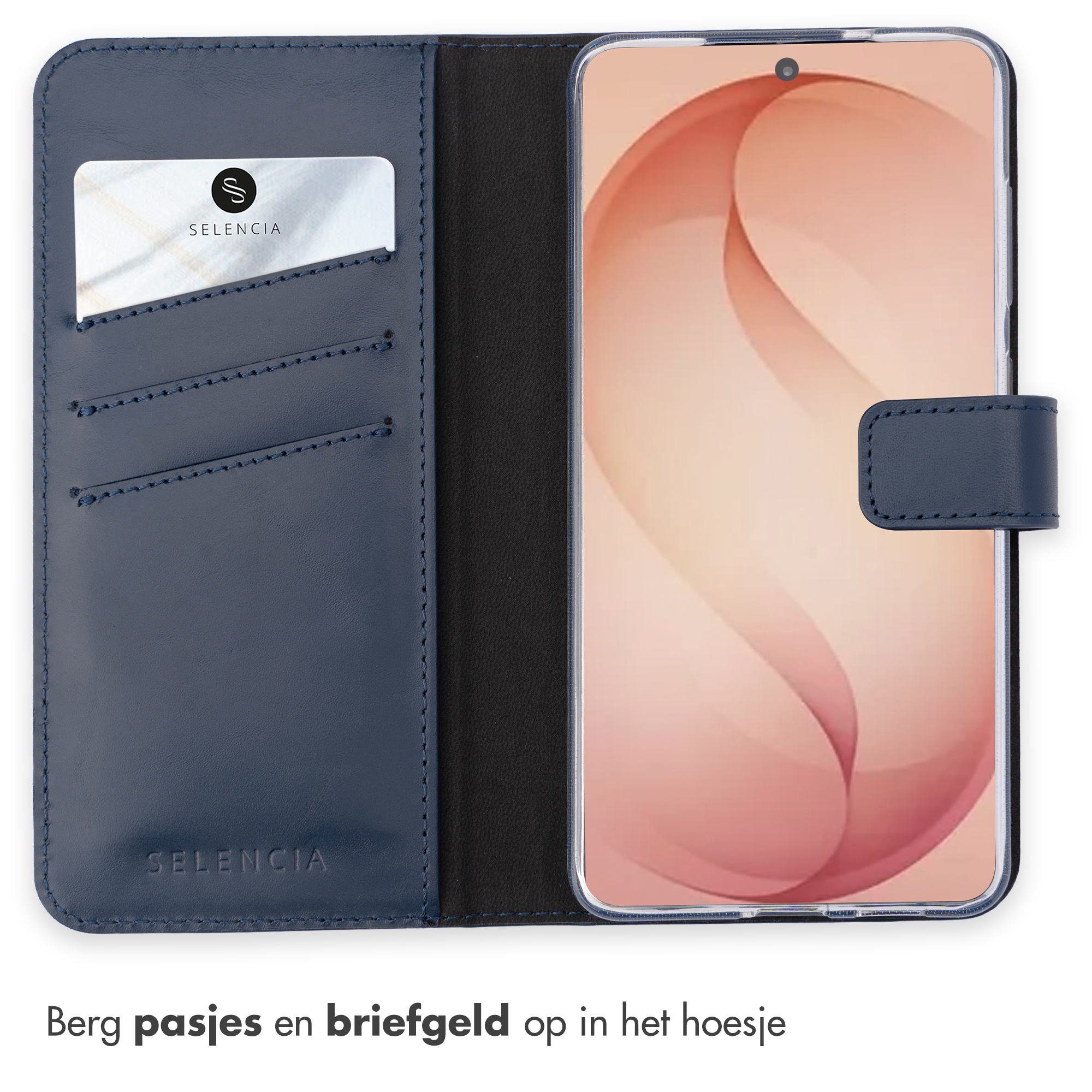 Selencia Echt Lederen Bookcase, Flip case, Samsung, Samsung Galaxy S26 Plus, 17 cm (6.7"), Blauw