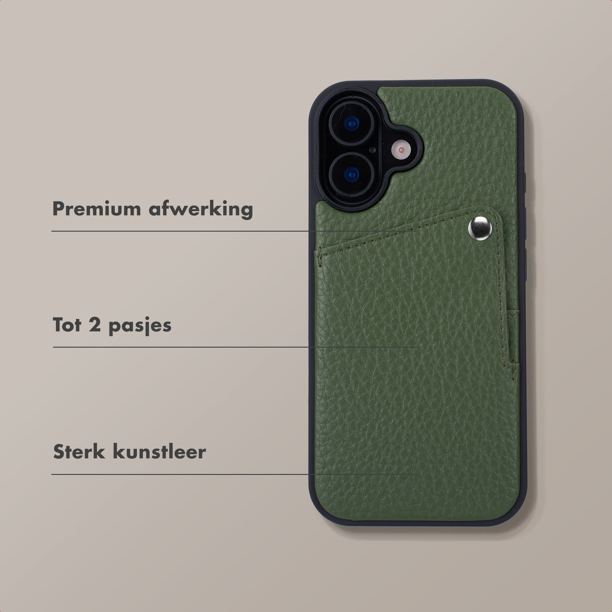 Riva Backcover met Pashouder Apple iPhone 16 - Sage Green