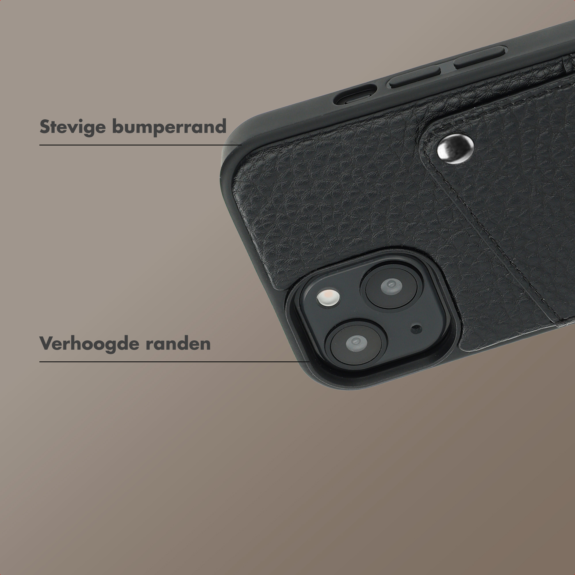 Riva Backcover met Pashouder Apple iPhone 14 / 13 - Zwart