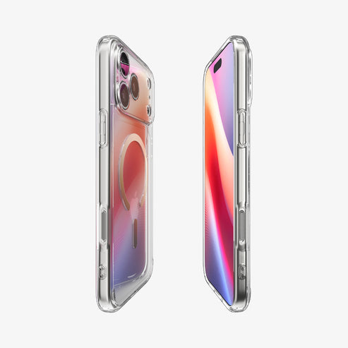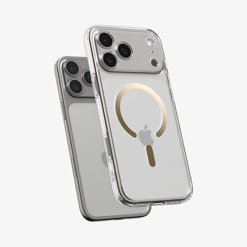 Spigen ACS10068. Type etui: Hoes, Merkcompatibiliteit: Apple, Compatibiliteit: iPhone 17 Pro, Maximale schermgrootte: 16 cm (6.3"), Kleur van het product: Goud, Transparant