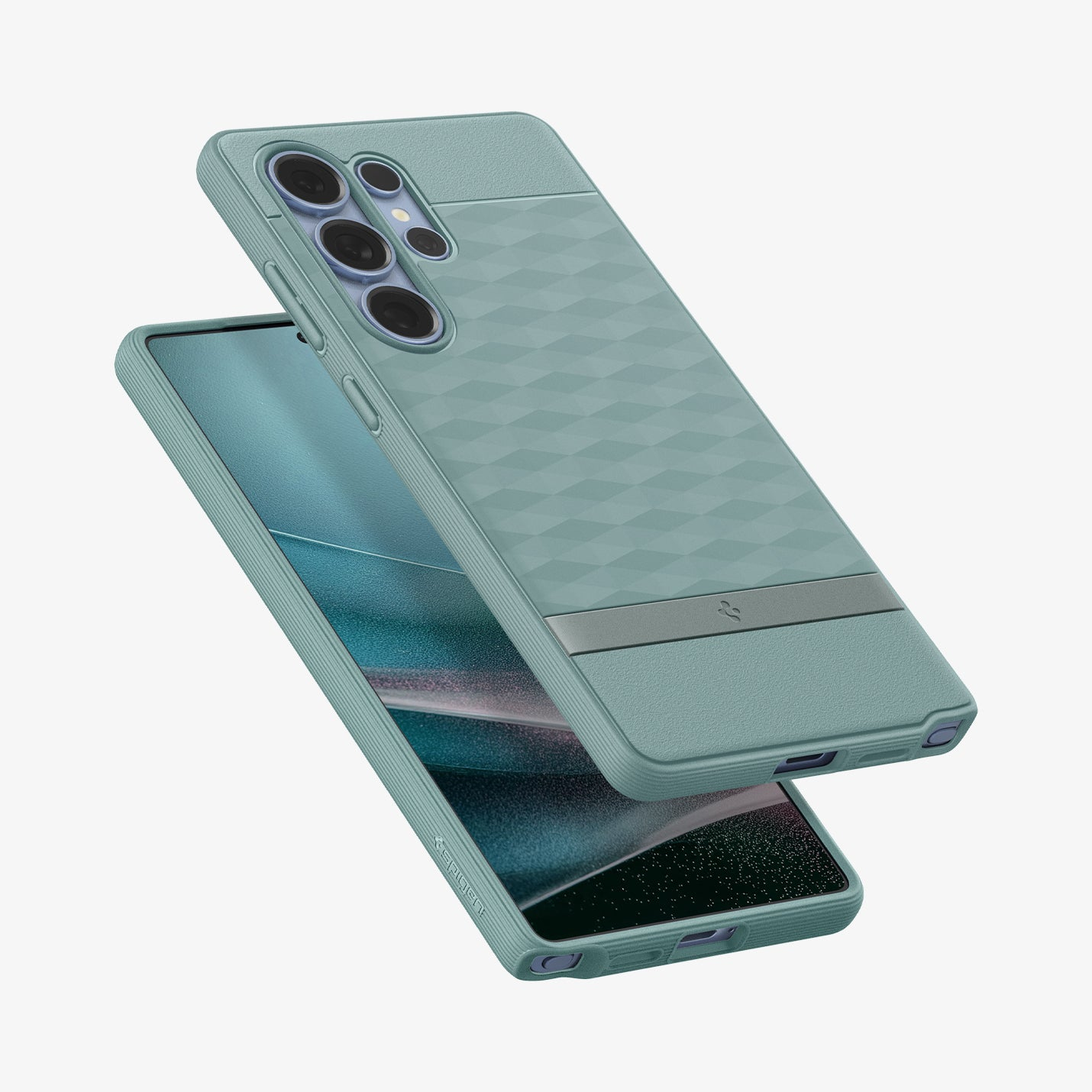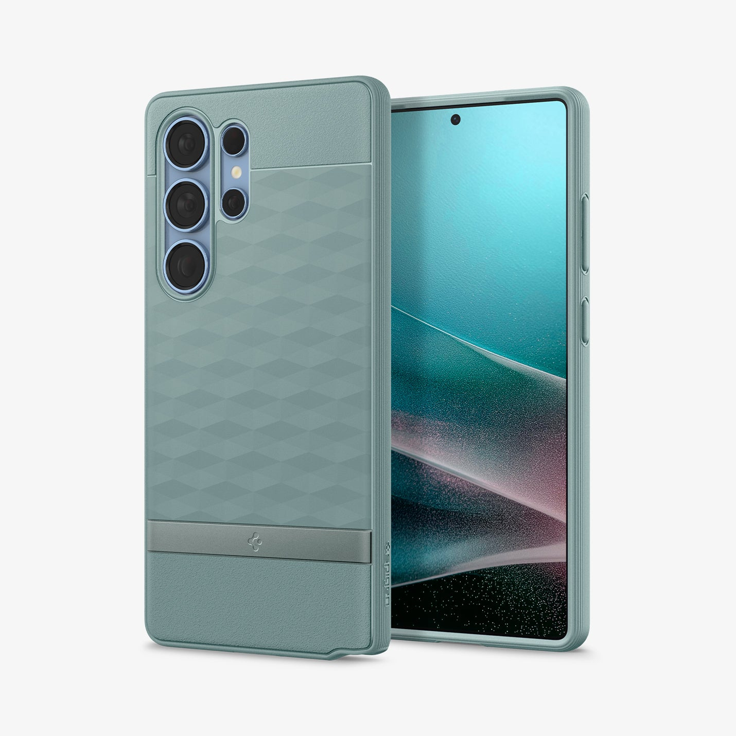 Spigen Parallax (MagFit). Type etui: Hoes, Merkcompatibiliteit: Samsung, Compatibiliteit: Galaxy S25 Ultra, Maximale schermgrootte: 17,5 cm (6.9"), Oppervlakte kleur: Monochromatisch, Kleur van het product: Groen