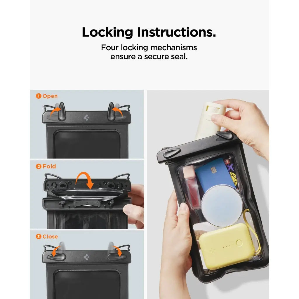 Spigen A603, Buidelzak, Universeel, iPhone 16/15/14/13/12/SE2/SE Series, Pixel 9/8/7/6 series, Xperia, Sharp, Galaxy, Zwart, Transparant