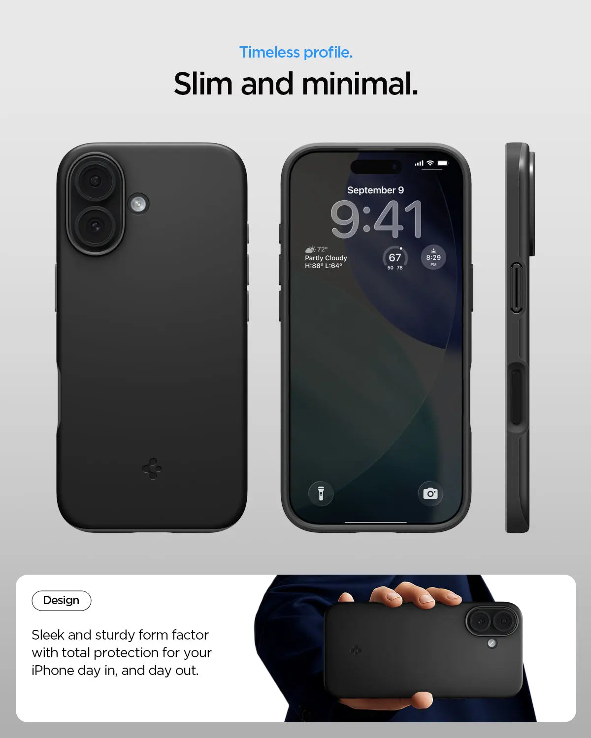 Spigen Thin Fit (MagFit). Type etui: Hoes, Merkcompatibiliteit: Apple, Compatibiliteit: iPhone 17, Maximale schermgrootte: 16 cm (6.3"), Oppervlakte kleur: Monochromatisch, Kleur van het product: Donkergrijs