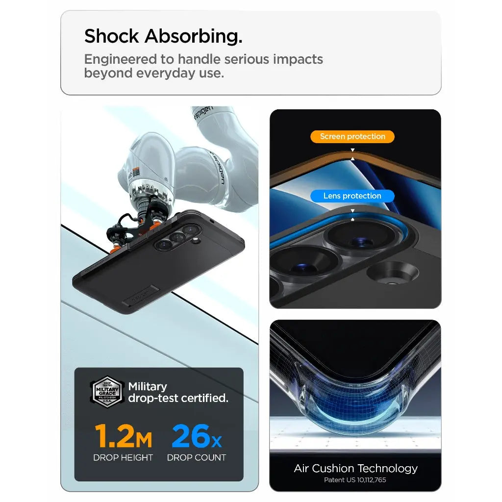 Spigen Tough Armor (Magfit). Type etui: Hoes, Merkcompatibiliteit: Samsung, Compatibiliteit: Galaxy S26+, Maximale schermgrootte: 17 cm (6.7"), Kleur van het product: Zwart, Bureaustandaard