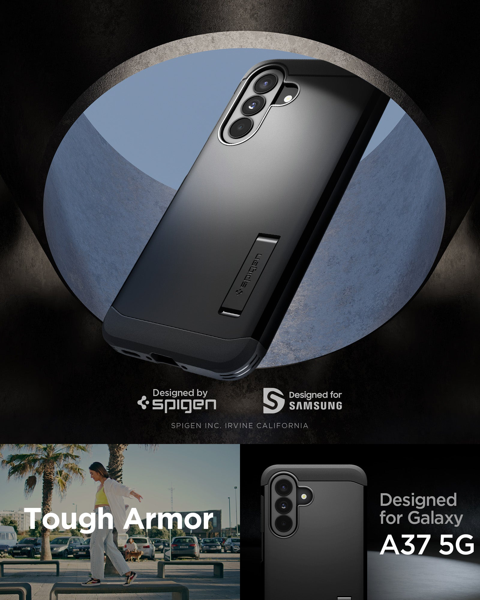 Spigen Tough Armor. Type etui: Hoes, Merkcompatibiliteit: Samsung, Compatibiliteit: Galaxy A37 5G, Maximale schermgrootte: 17 cm (6.7"), Oppervlakte kleur: Monochromatisch, Kleur van het product: Zwart, Bureaustandaard