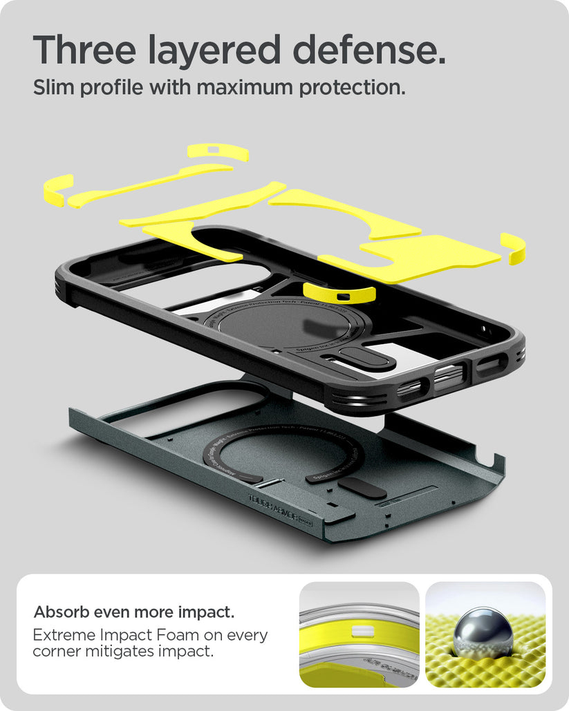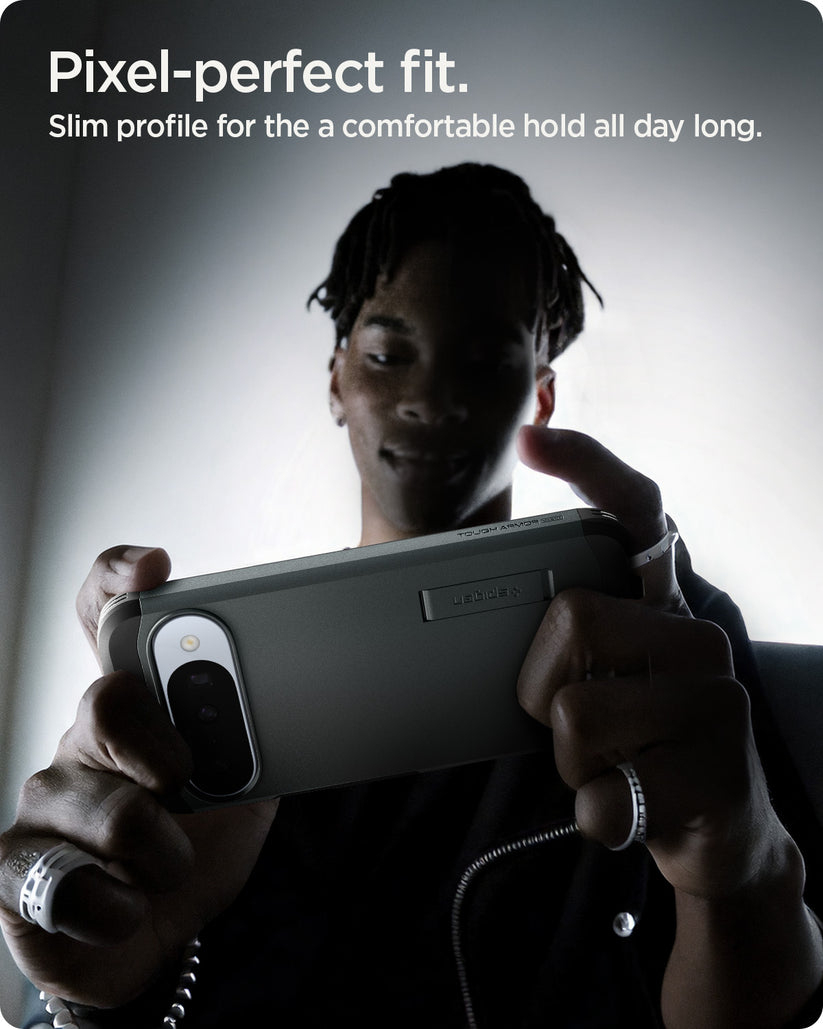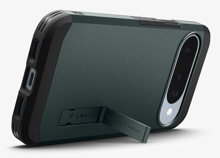 Spigen ACS09707. Type etui: Hoes, Merkcompatibiliteit: Google, Compatibiliteit: Pixel 10 Pro, Maximale schermgrootte: 16 cm (6.3"), Oppervlakte kleur: Monochromatisch, Kleur van het product: Donkergroen, Bureaustandaard