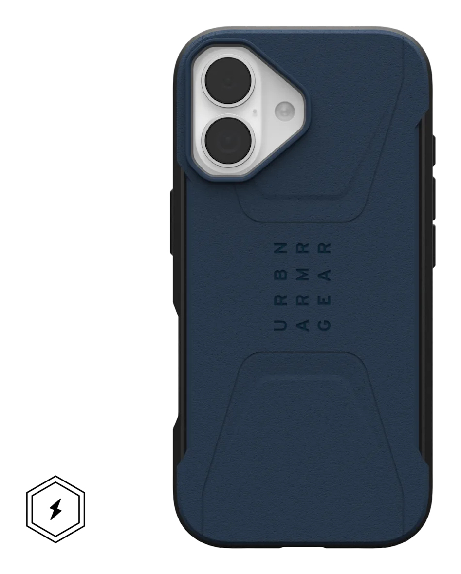 Urban Armor Gear 114547115555. Type etui: Hoes, Merkcompatibiliteit: Apple, Compatibiliteit: iPhone 17, Maximale schermgrootte: 16 cm (6.3"), Oppervlakte kleur: Monochromatisch, Kleur van het product: Blauw