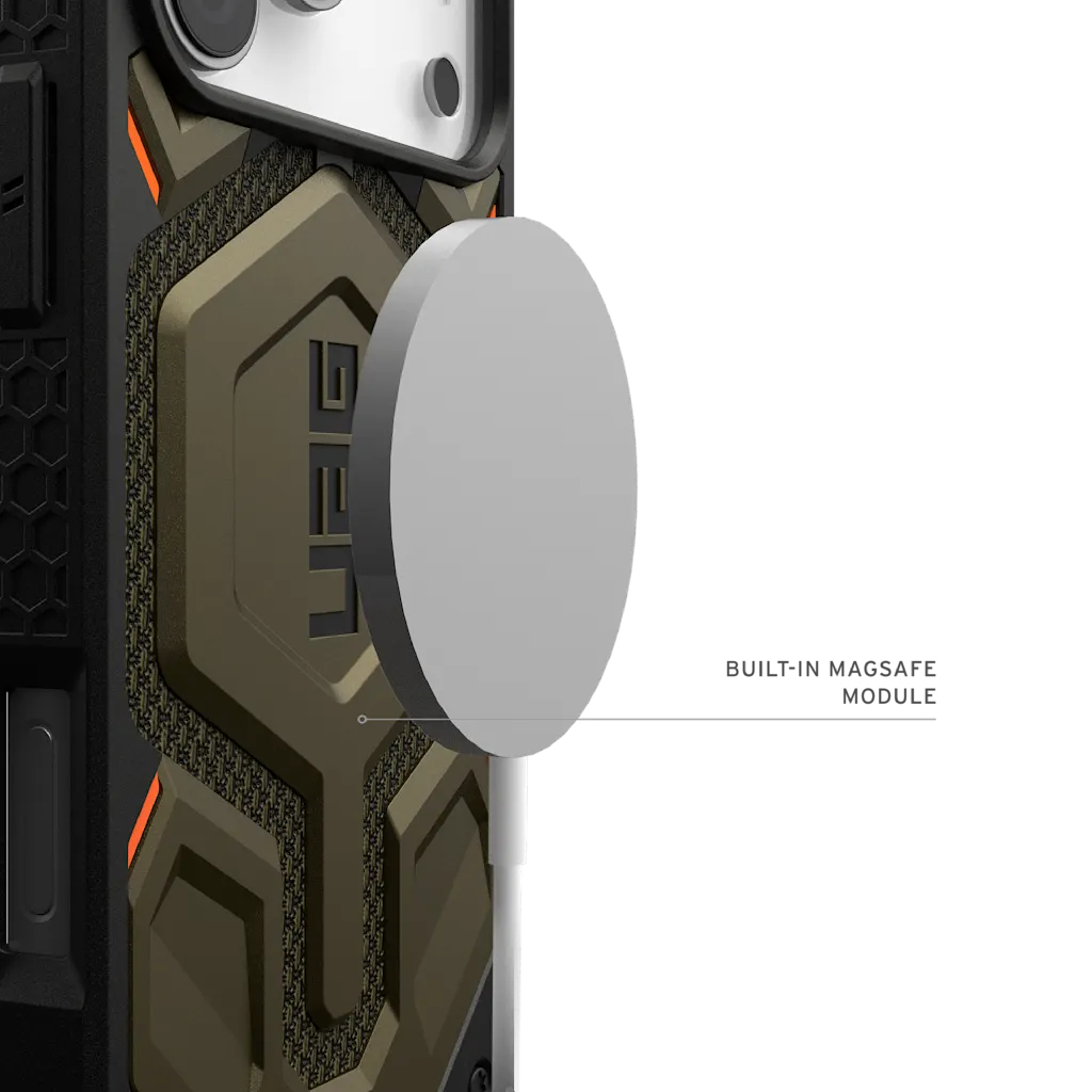 Urban Armor Gear Monarch Pro. Type etui: Hoes, Merkcompatibiliteit: Apple, Compatibiliteit: iPhone 17 Pro Max, Maximale schermgrootte: 17,5 cm (6.9"), Oppervlakte kleur: Monochromatisch, Kleur van het product: Zwart, Groen