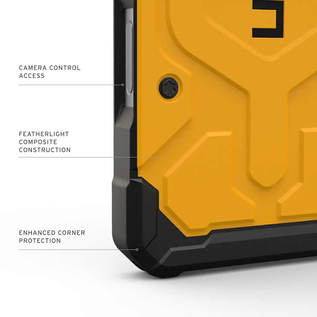 Urban Armor Gear Pathfinder. Type etui: Hoes, Merkcompatibiliteit: Apple, Compatibiliteit: iPhone 17 Pro, Maximale schermgrootte: 16 cm (6.3"), Oppervlakte kleur: Monochromatisch, Kleur van het product: Geel
