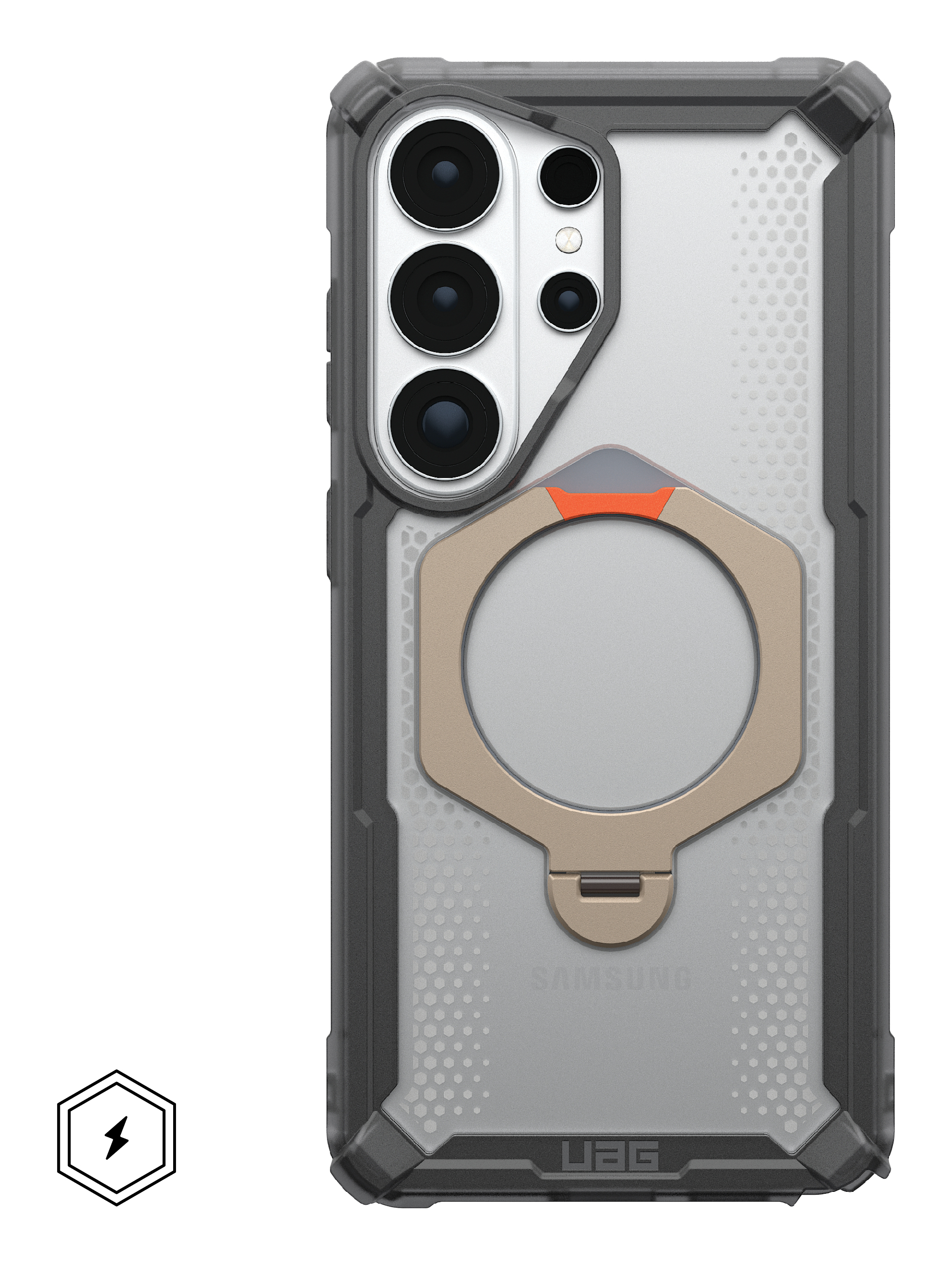 Urban Armor Gear Plasma XTE 360. Type etui: Hoes, Merkcompatibiliteit: Samsung, Compatibiliteit: Galaxy S26 Ultra, Maximale schermgrootte: 17,5 cm (6.9"), Oppervlakte kleur: Monochromatisch, Kleur van het product: As, Bureaustandaard