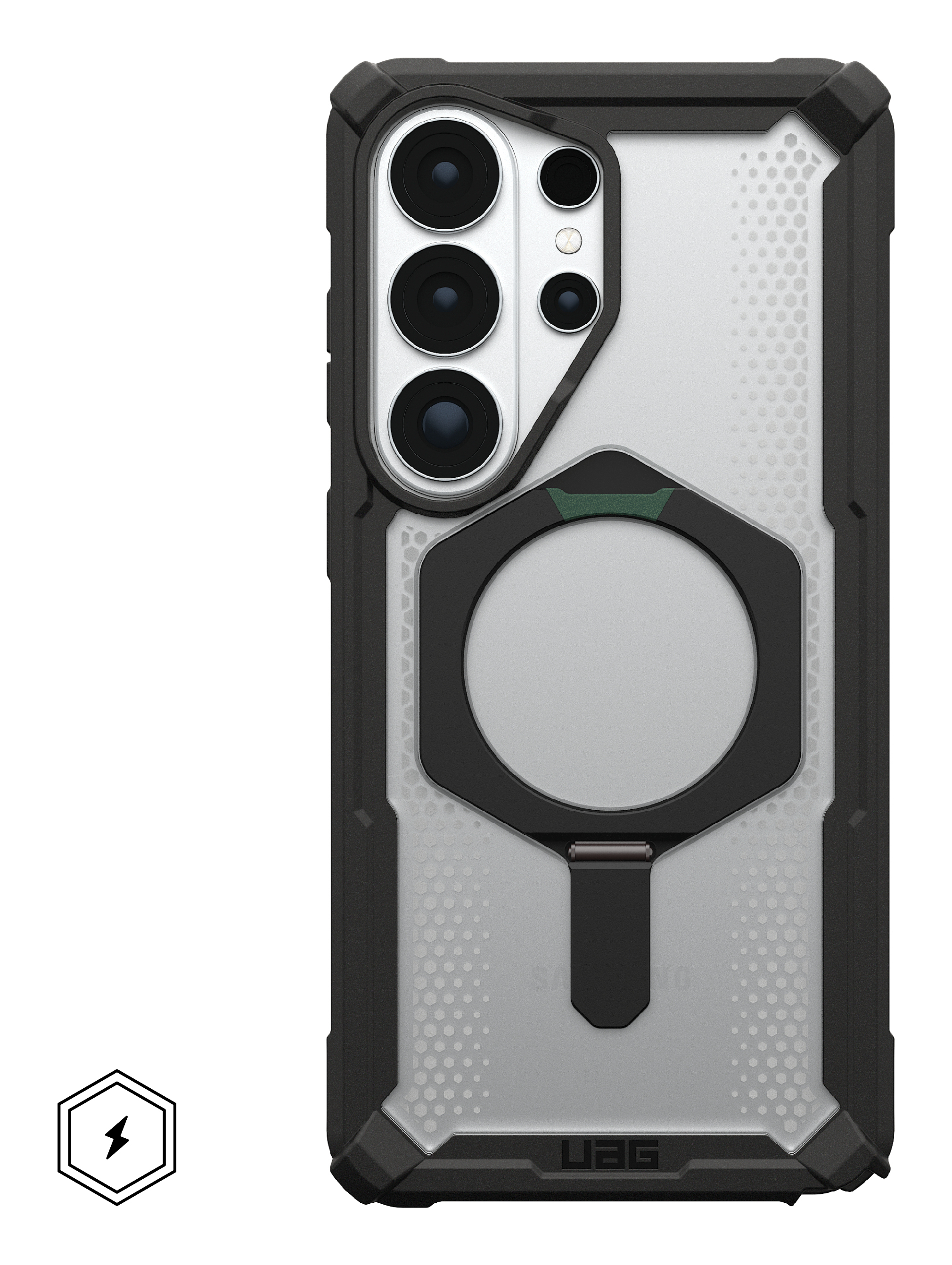 Urban Armor Gear Plasma XTE. Type etui: Hoes, Merkcompatibiliteit: Samsung, Compatibiliteit: Galaxy S26 Ultra, Maximale schermgrootte: 17,5 cm (6.9"), Oppervlakte kleur: Monochromatisch, Kleur van het product: Zwart, Transparant, Bureaustandaard