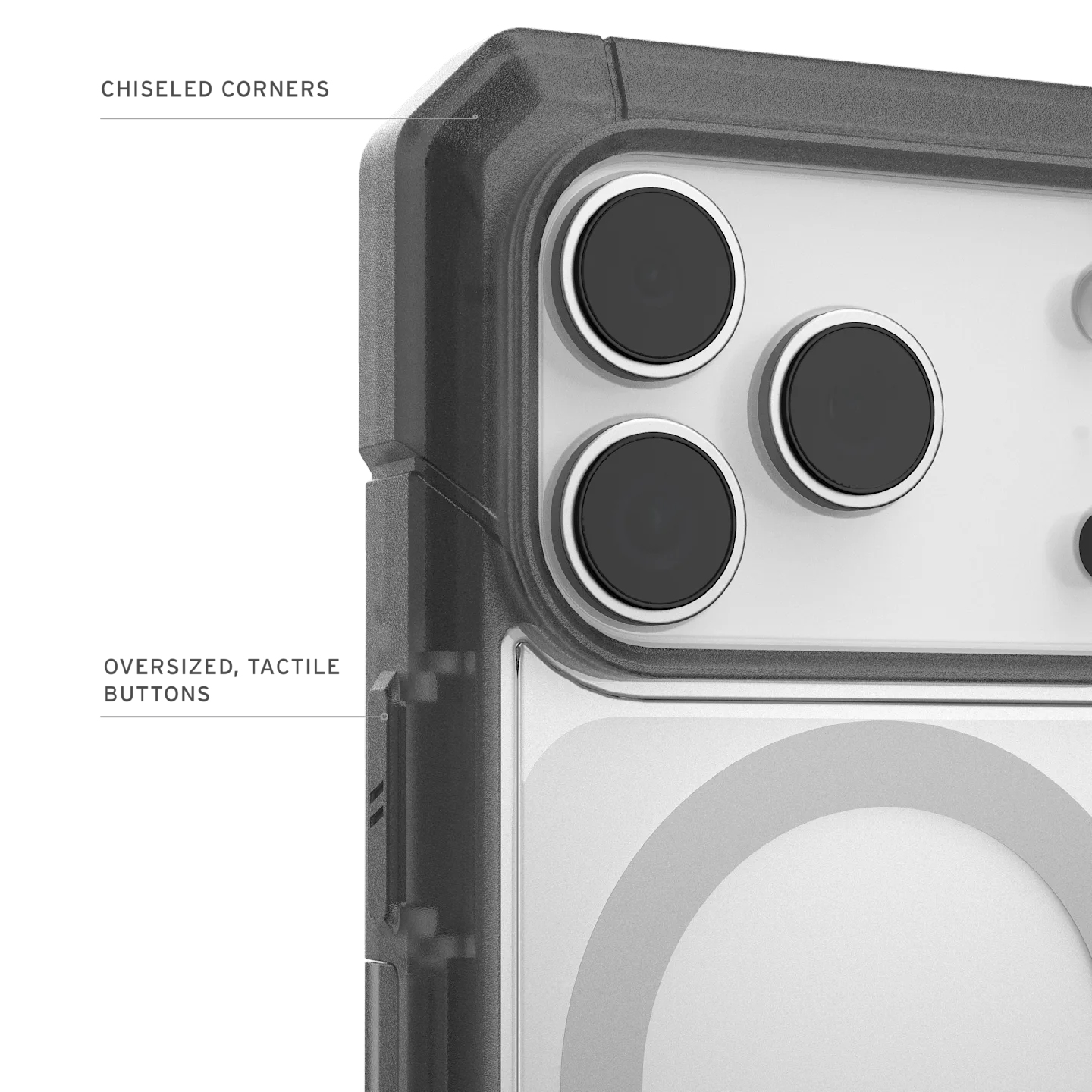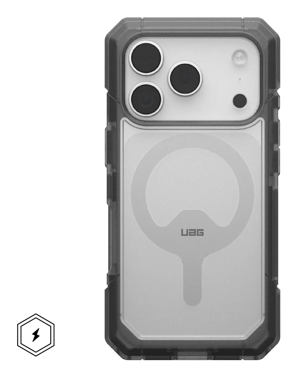 Urban Armor Gear 114521114G31. Type etui: Hoes, Merkcompatibiliteit: Apple, Compatibiliteit: iPhone 17 Pro, Maximale schermgrootte: 16 cm (6.3"), Oppervlakte kleur: Monochromatisch, Kleur van het product: As, Transparant