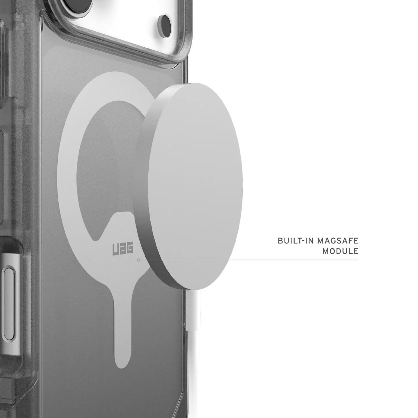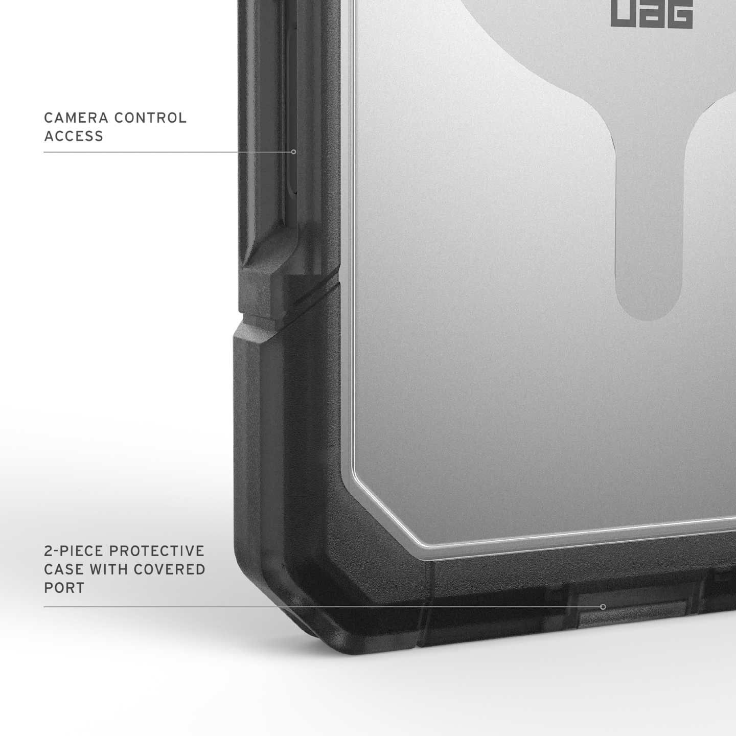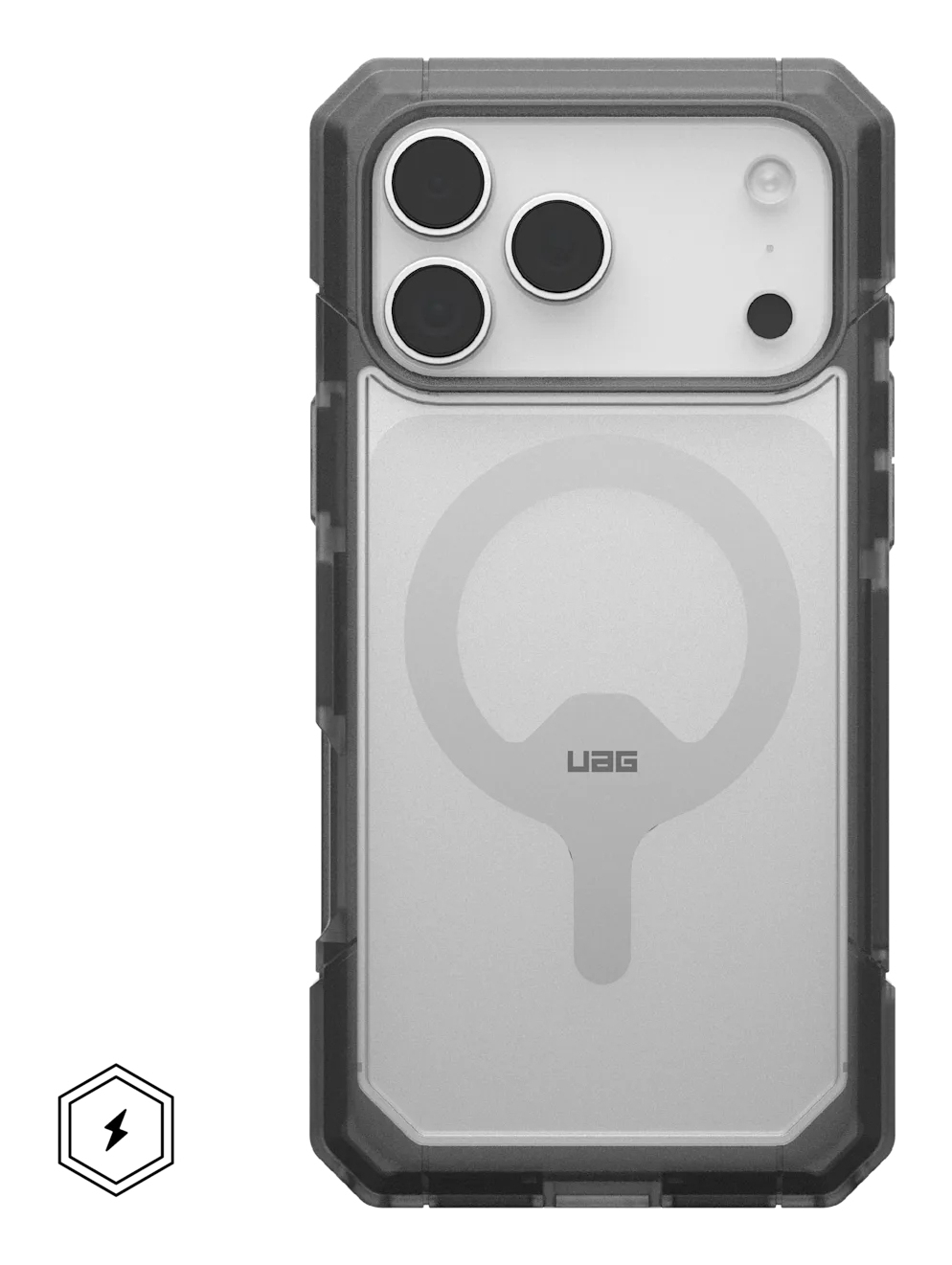 Urban Armor Gear 114522114G31. Type etui: Hoes, Merkcompatibiliteit: Apple, Compatibiliteit: iPhone 17 Pro Max, Maximale schermgrootte: 17,5 cm (6.9"), Oppervlakte kleur: Monochromatisch, Kleur van het product: As, Transparant