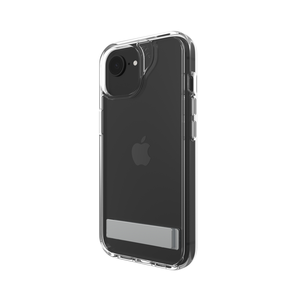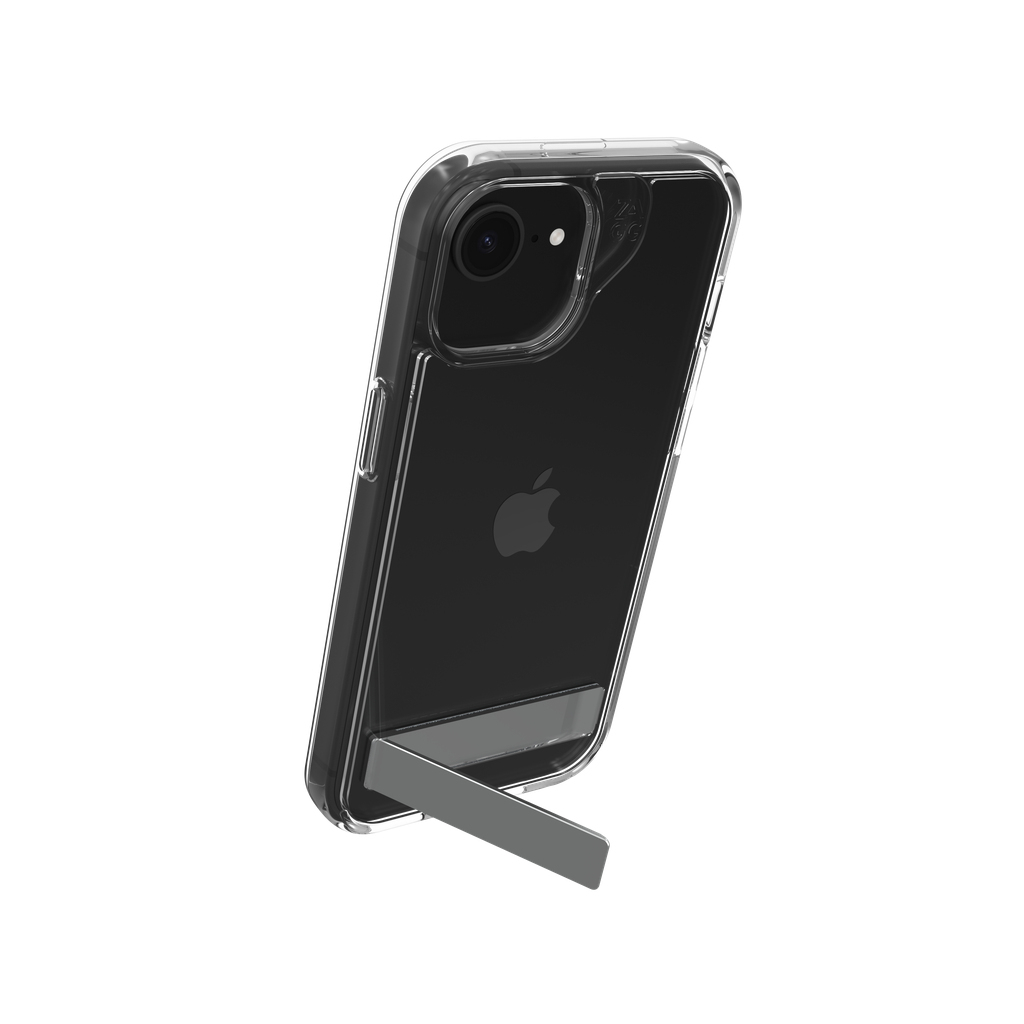 ZAGG Crystal Palace Kickstand. Type etui: Hoes, Merkcompatibiliteit: Apple, Compatibiliteit: iPhone 17e/16e/15/14/13, Maximale schermgrootte: 15,5 cm (6.1"), Oppervlakte kleur: Monochromatisch, Kleur van het product: Transparant, Bureaustandaard