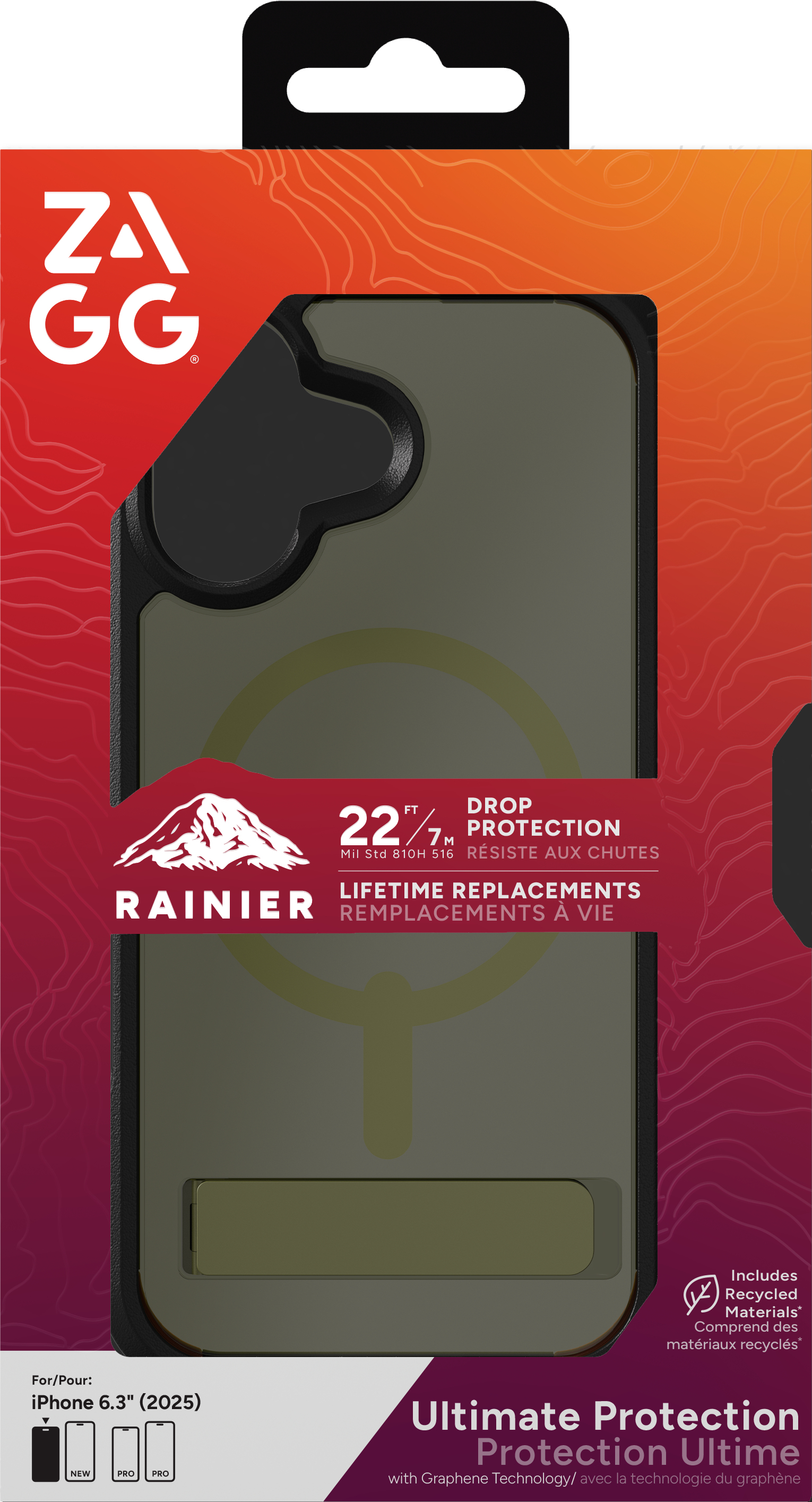 ZAGG Rainier Snap Kickstand. Type etui: Hoes, Merkcompatibiliteit: Apple, Compatibiliteit: iPhone 17, Maximale schermgrootte: 16 cm (6.3"), Kleur van het product: Groen, Bureaustandaard
