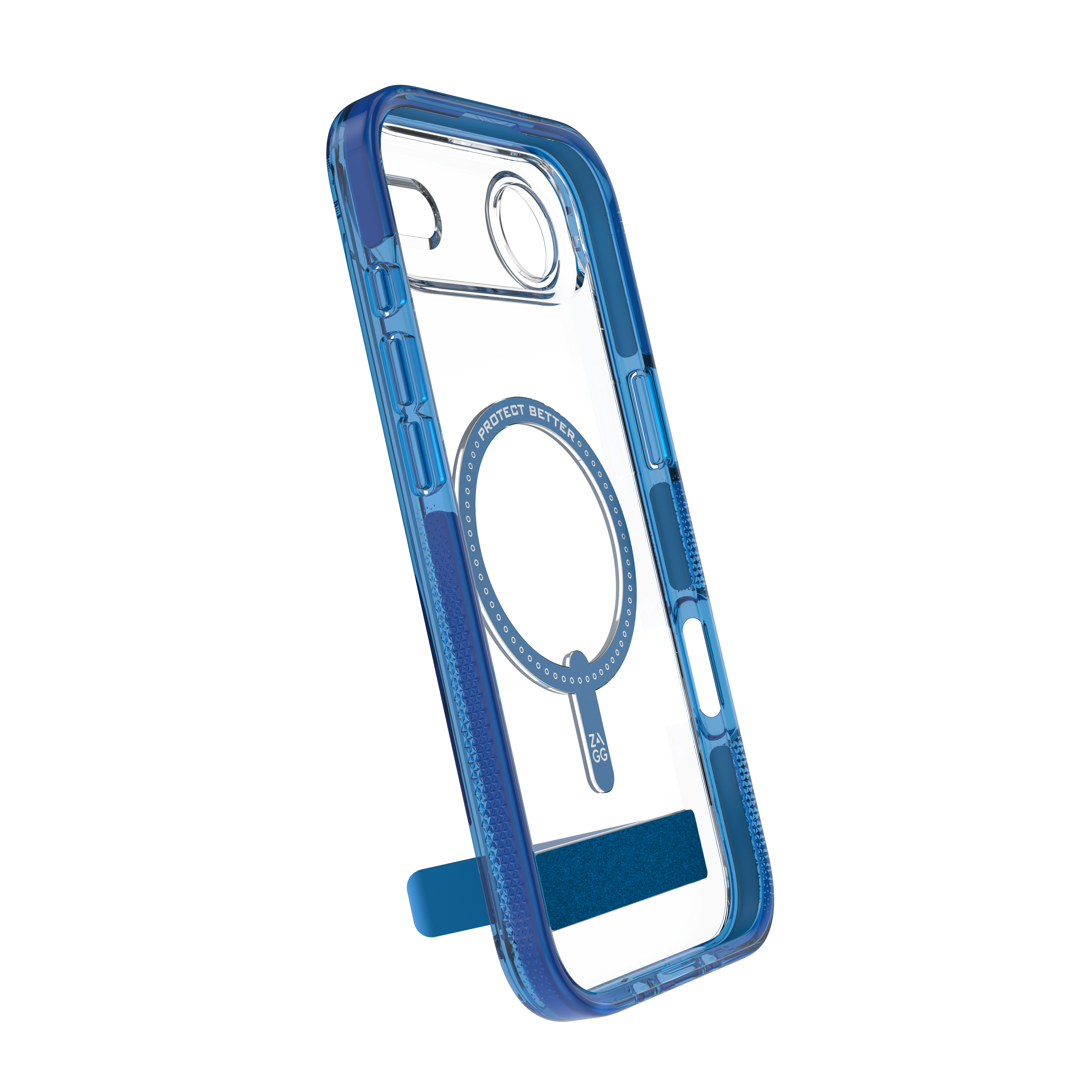 ZAGG Santa Cruz Snap Kickstand. Type etui: Hoes, Merkcompatibiliteit: Apple, Compatibiliteit: iPhone 17 Air, Maximale schermgrootte: 16,5 cm (6.5"), Kleur van het product: Blauw, Transparant, Bureaustandaard