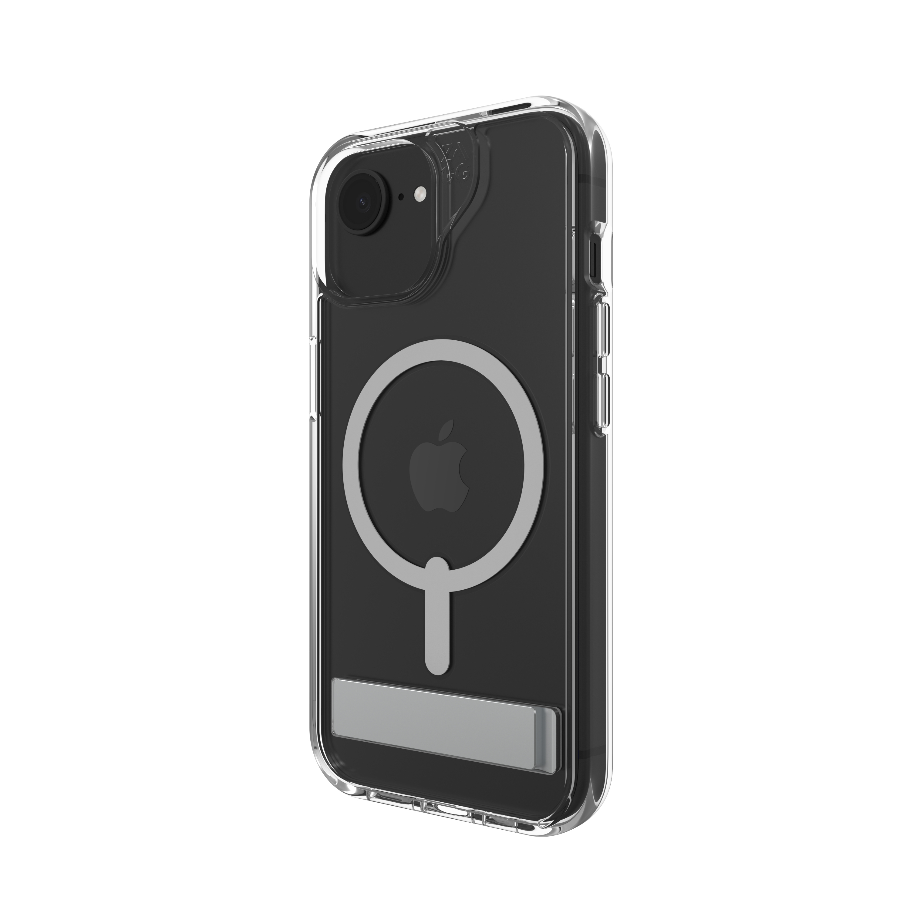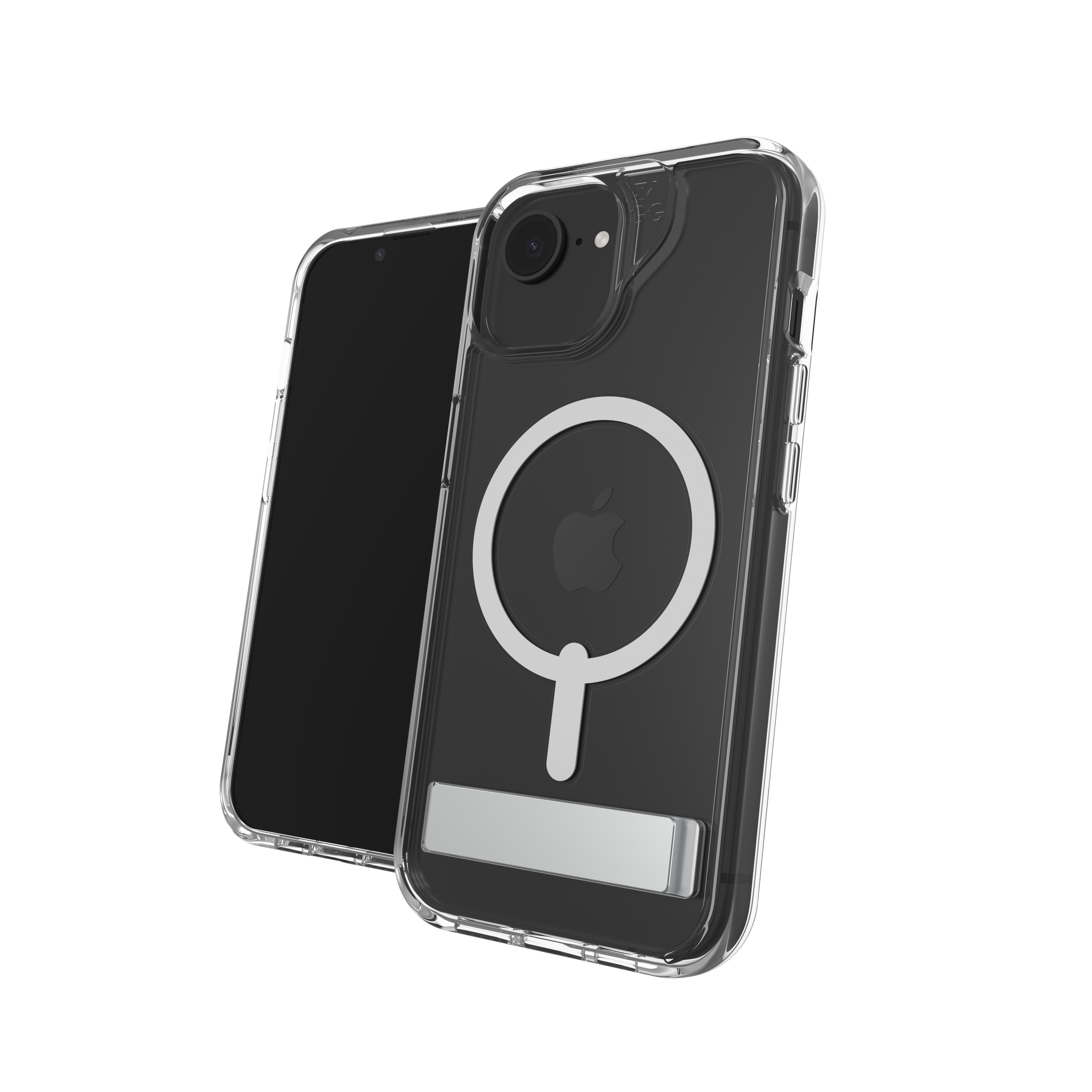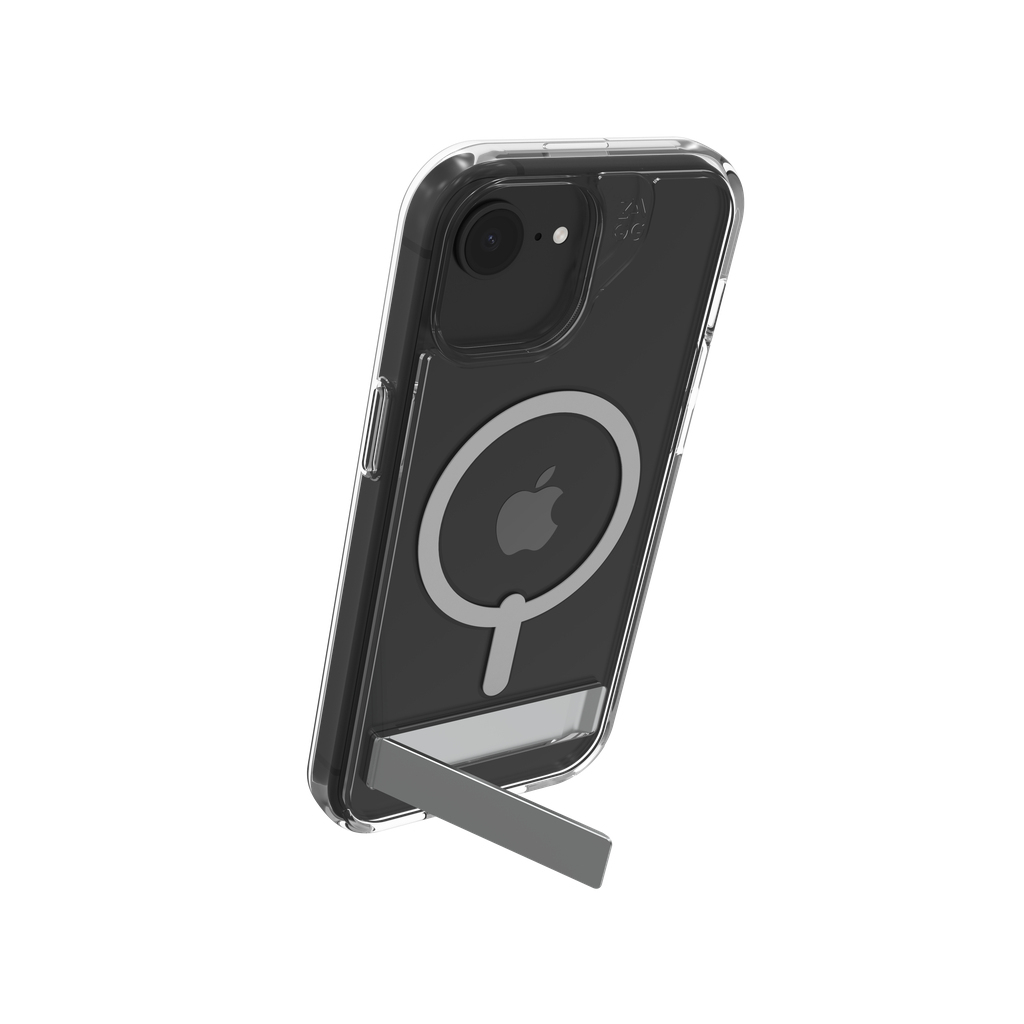 ZAGG Crystal Palace Snap Kickstand. Type etui: Hoes, Merkcompatibiliteit: Apple, Compatibiliteit: iPhone 17e/16e/15/14/13, Maximale schermgrootte: 15,5 cm (6.1"), Oppervlakte kleur: Monochromatisch, Kleur van het product: Transparant, Bureaustandaard