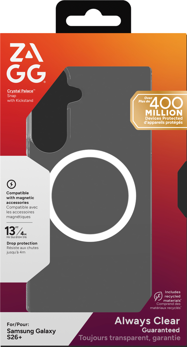 ZAGG Crystal Palace Snap. Type etui: Hoes, Merkcompatibiliteit: Samsung, Compatibiliteit: Galaxy S26+, Maximale schermgrootte: 17 cm (6.7"), Kleur van het product: Transparant