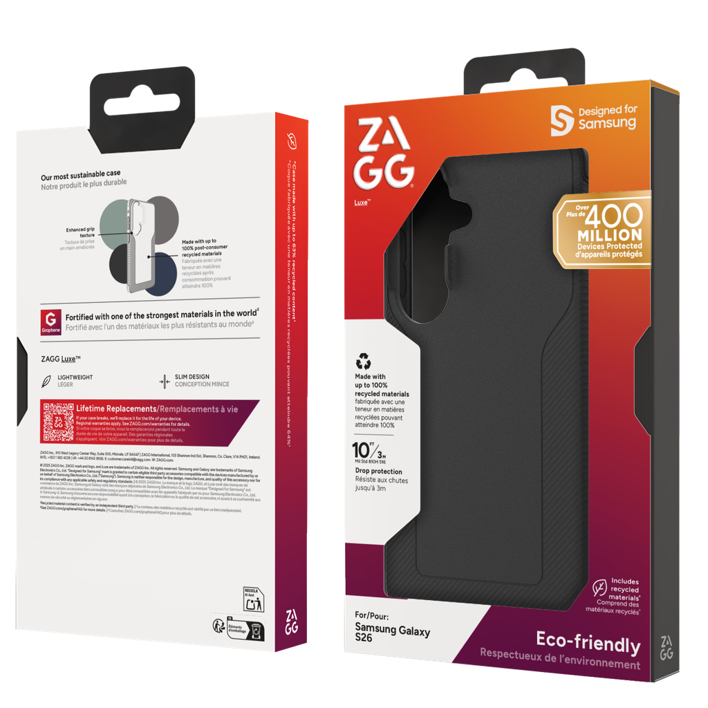 ZAGG Luxe. Type etui: Hoes, Merkcompatibiliteit: Samsung, Compatibiliteit: Galaxy S26, Maximale schermgrootte: 16 cm (6.3"), Kleur van het product: Zwart