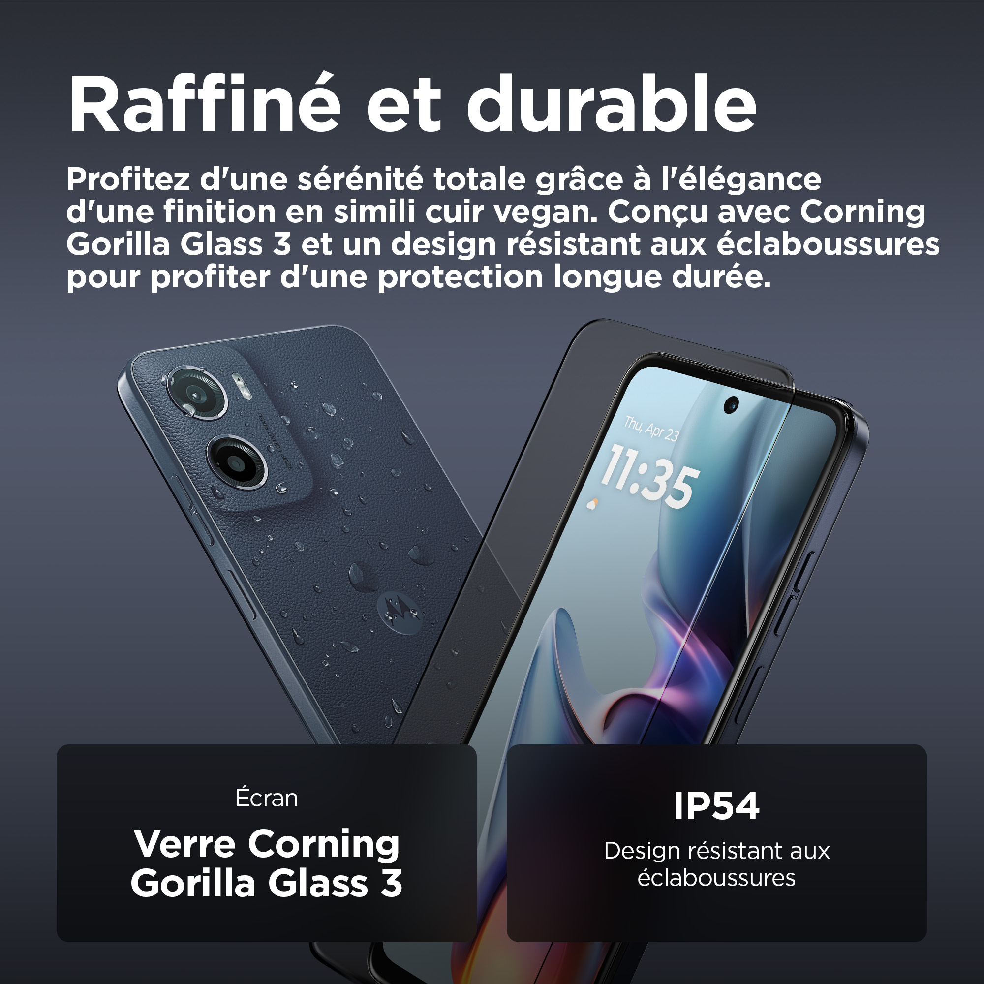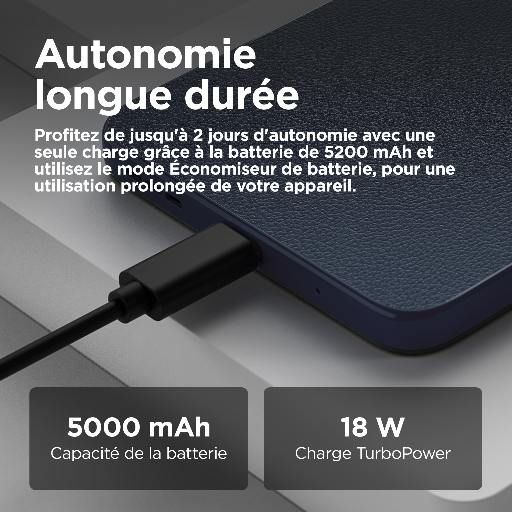 Geniet van helder entertainment met de nieuwe moto e15. Kijk je favoriete series en films op een superhelder 6,67-inch display van 90 Hz(8), zelfs buiten in het zonlicht. En luister naar geluid overal om je heen dankzij krachtige stereoluidsprekers met Basversterking. Maak dag en nacht prachtig scherpe foto's met de Quad Pixel-camera van 32 MP(2) met AI. Trap het gaspedaal in met meer snelheid en efficiëntie en maximaal 6 GB(5) beschikbaar RAM met RAM-boost(4). Met een afwerking van vegan leer, een waterafstotend design(3) en Corning® Gorilla® Glass 3 gaat de stijlvolle moto e15 lang mee. En ga langer door met wat je leuk vindt dankzij een accu van 5200 mAh die lang meegaat en TurboPower™ opladen. Maak elke dag helder met de moto e15.