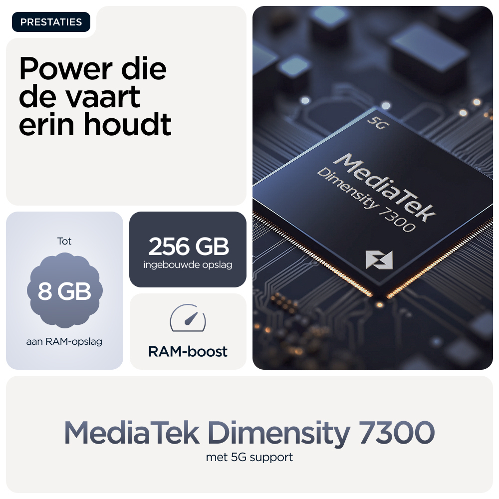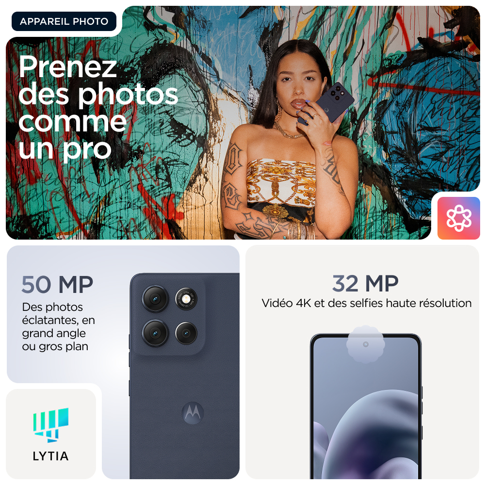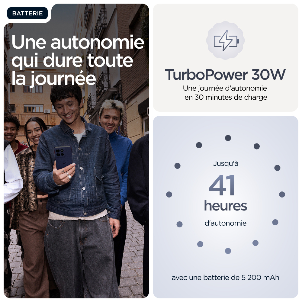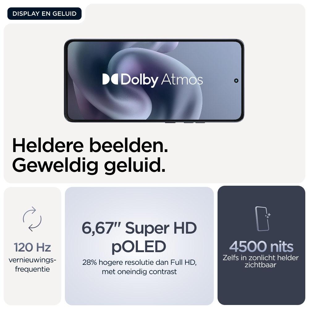 Voor wie grenzen wil verleggen in het leven: maak kennis met de moto g86 5G. Dit model is prachtig vormgegeven met hoogwaardige materialen en valt echt op door z'n opvallende design met geavanceerde water- en valbestendigheid(6,7). Zie alles op een ultra-helder 6,67-inch Super HD (1220p) display met Dolby Atmos®-geluid. Leg prachtige foto's vans met de 50MP Sony LYTIA™ 600-camera met moto ai(12) en maak moeiteloos professionele foto's. Profiteer van 41 uur batterijduur in slechts enkele minuten met TurboPower™ opladen(1,13). Ervaar de kracht van een geavanceerde processor en 8 GB - uitbreidbaar tot 24 GB met RAM-boost - en tot 256 GB aan opslag(3,9). Verhoog je creatieve vrijheid, soepele interactie en gemoedsrust met exclusieve Moto-functies. Geniet van het avontuur in het leven met de moto g86 5G.