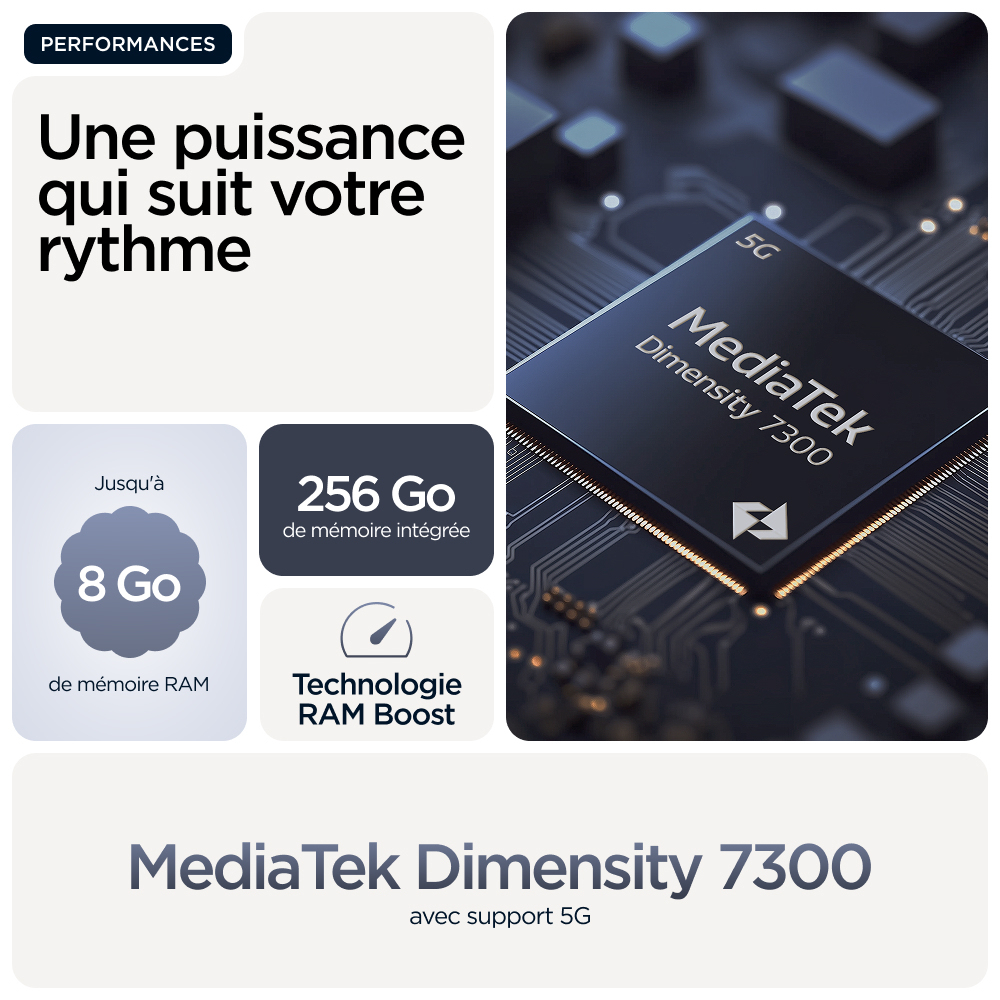6.67", AMOLED, HDR10+, 2712 x 1220px, 446ppi, MediaTek Dimensity 7300, 8/256GB, 50MP + 8MP, 32MP, USB Type-C, 5G, Bluetooth 5.4, Wi-Fi 6, NFC, Android 15