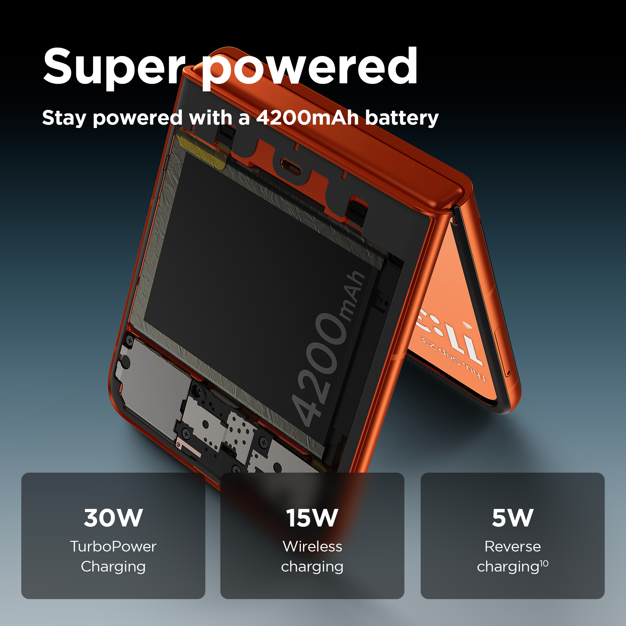 6.9" FHD+ pOLED + 3.6" pOLED, 8/256GB, MediaTek Dimensity 7300X, 50MP + 13MP, 32MP, 5G, eSIM + SIM, Bluetooth 5.4, WiFi, USB Type-C, 4200mAh, Android 14