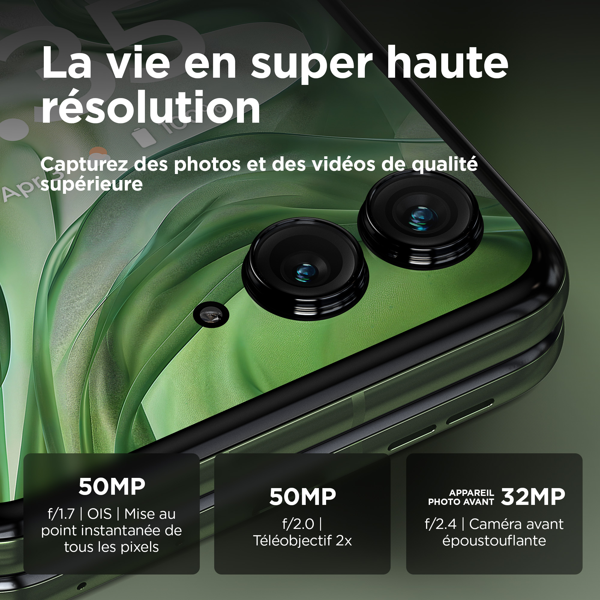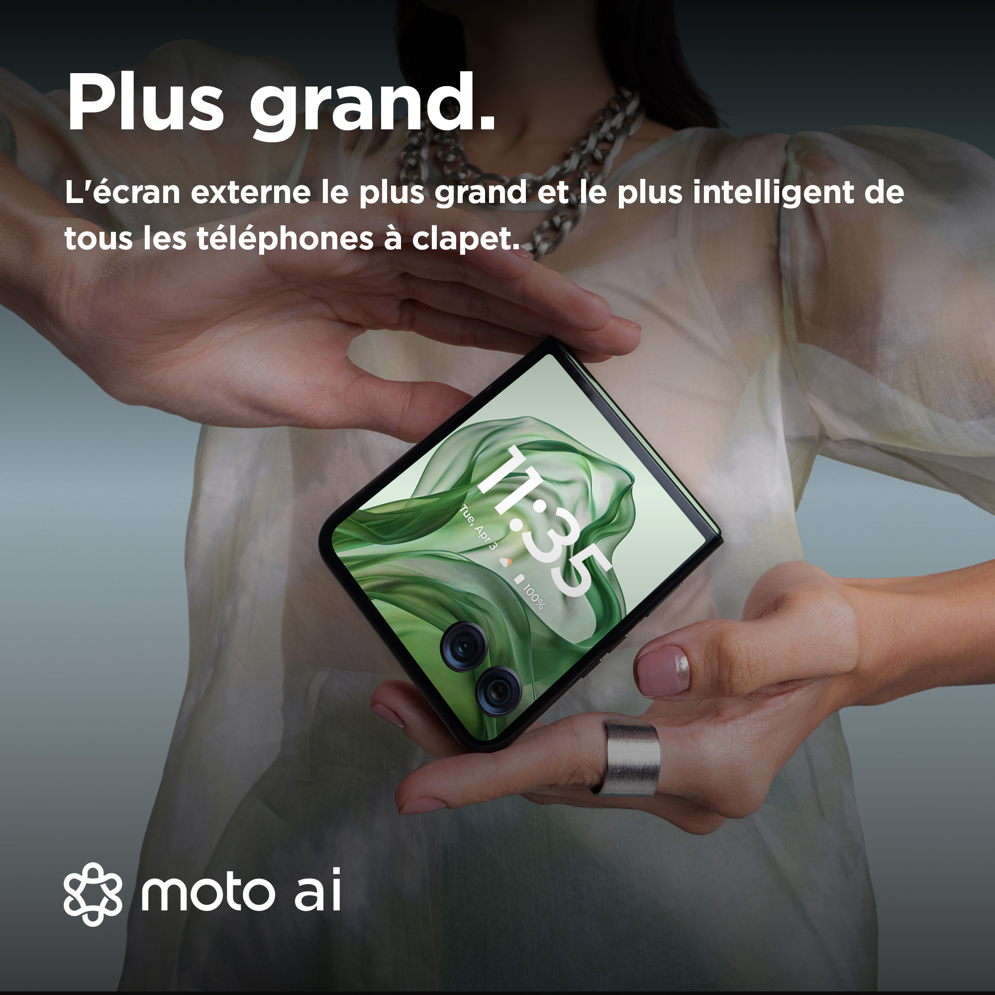 De vouwbare smartphone die alles veranderde, doet dit opnieuw. Maak kennis met de motorola razr 50 ultra, met de kracht van moto ai, die nieuwe manieren biedt om te communiceren, opnamen te maken en te creëren. Met het grootste, intelligentste externe display van elke fliptelefoon kun je alles doen zonder je toestel open te klappen. Maak prachtige foto's en video's met het dubbele 50 MP-camerasysteem en de telezoomlens. Verken je creativiteit met Flex View, of je de motorola razr 50 ultra nu gebruikt als een videocamera of in je eigen fotohokje stapt. En als je dingen wilt zien op een groter scherm, klap je het toestel eenvoudig open, zodat je een supervloeiend, zeer levendig 6,9-inch pOLED-display krijgt. Voeg daar een afwerking van zacht vegan leer aan toe, bescherming onder water en Corning® Gorilla® Glass Victus® en je begrijpt waarom de motorola razr 50 ultra onze intelligentste fliptelefoon tot nu toe is.