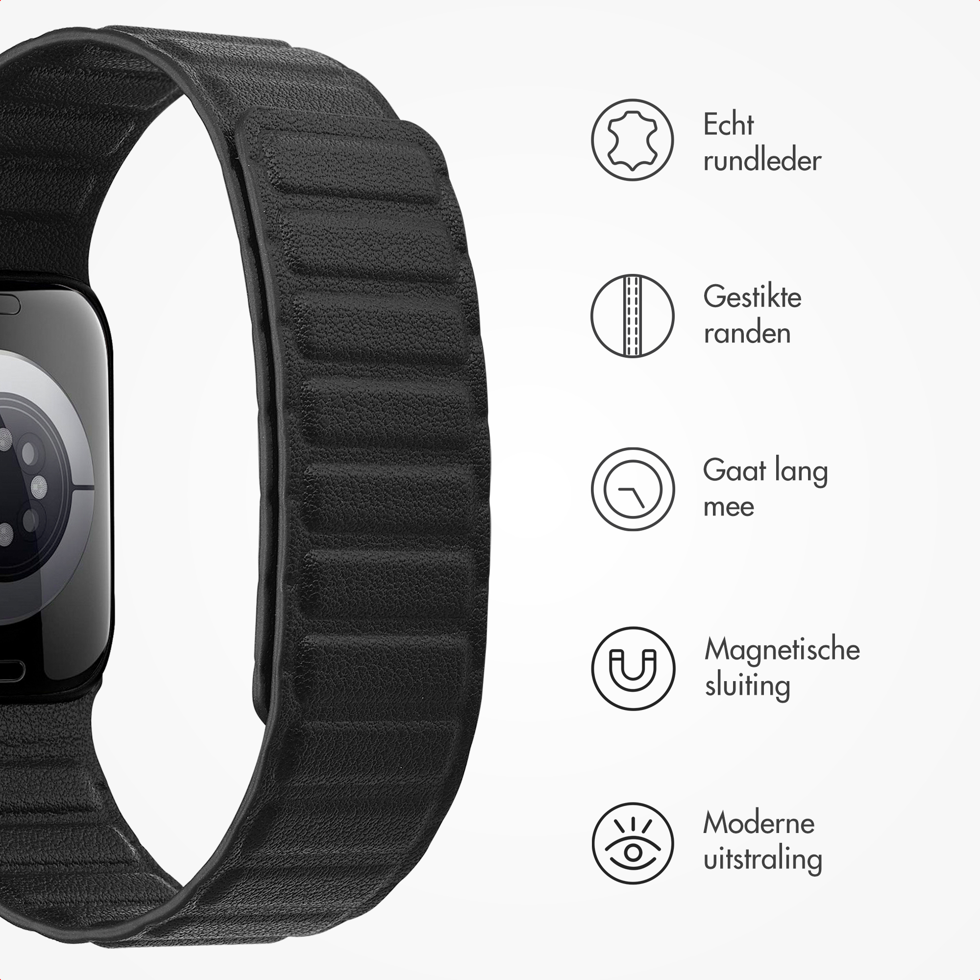 Magnetisch echt lederen bandje Apple Watch Series 1 - 9 / SE (38/40/41 mm) | Series 10 / 11 (42 mm) - Zwart
