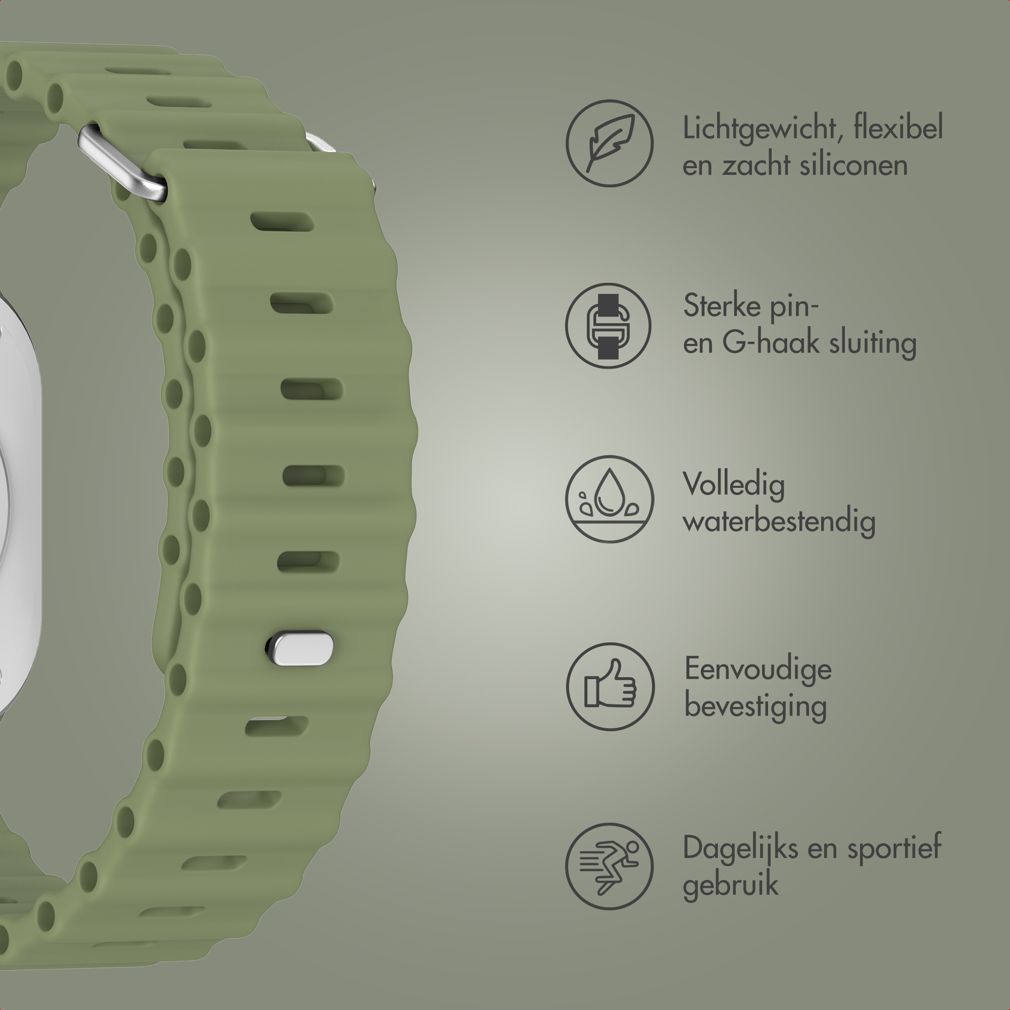 Accezz Ocean siliconenbandje, Polsband, Smartwatch, Donkergroen, Apple, Apple Watch 10 - 46 mm/Apple Watch 11 - 46 mm/Apple Watch 1 - 42 mm/Apple Watch 2 - 42 mm/Apple..., Silicone, Thermoplastic polyurethaan (TPU)