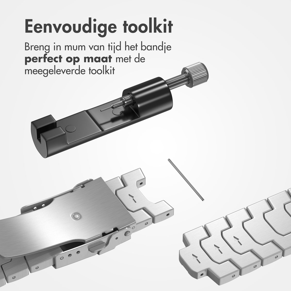 De Accezz Steel band geeft je Samsung Galaxy Watch 4, 5, 6 of 7 een upgrade en heeft een robuuste uitstraling. Gemaakt van hoogwaardig roestvrij staal en voorzien van een uniek geschakeld design, combineer je met deze band een stoere look met een gebruiksgemak Hoogwaardig RVSDe Accezz Steel band is vervaardigd uit ijzersterk roestvrij staal. Dit zorgt enerzijds voor een robuuste look en creëert anderzijds een zweetproof en waterbestendig ontwerp.