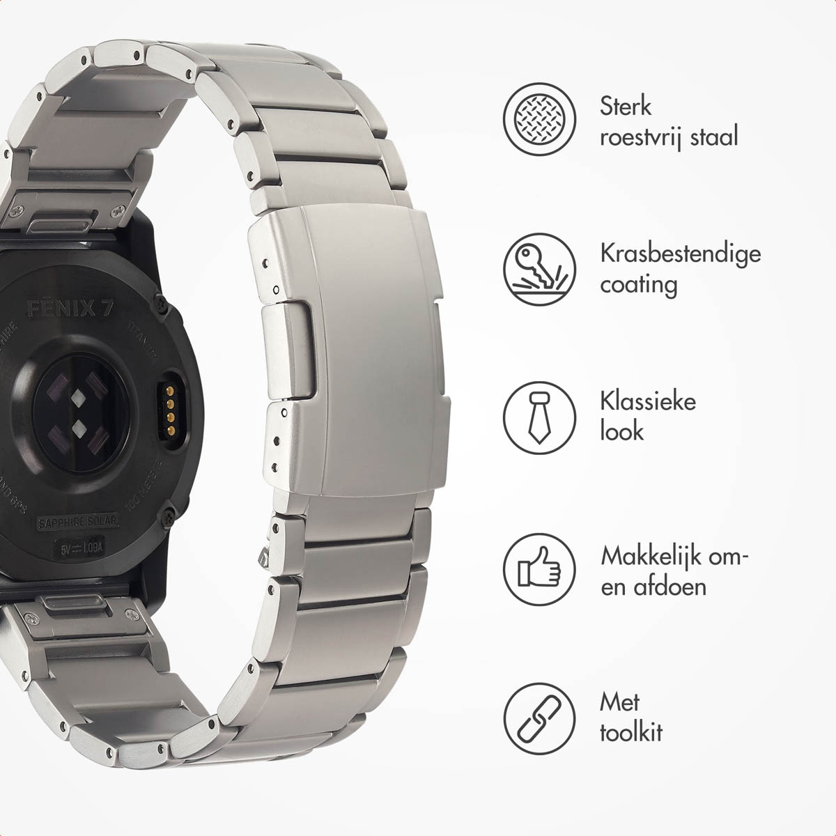 Accezz Titanium stalen bandje, Polsband, Smartwatch, Zilver, Garmin, Garmin Approach S60/Garmin Approach S62/Garmin Approach S70 (42 mm)/Garmin D2 Delta/Garmin D2 Mach..., Titanium