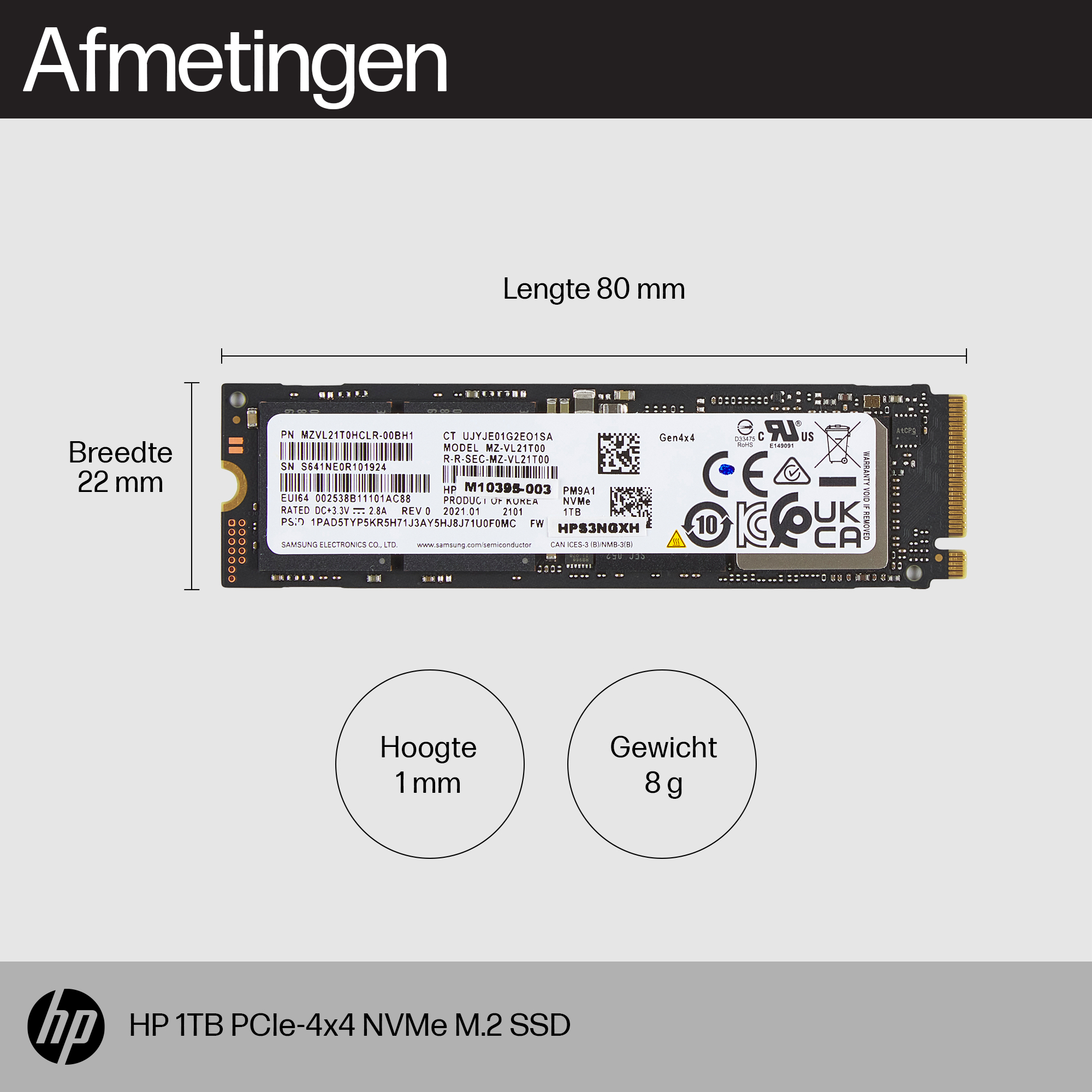HP 1 TB PCIe4x4 NVMe M.2 SSD, Windows 10, Windows 11, Bedrijf, 80 mm, 22 mm, 1 mm, 8 g
