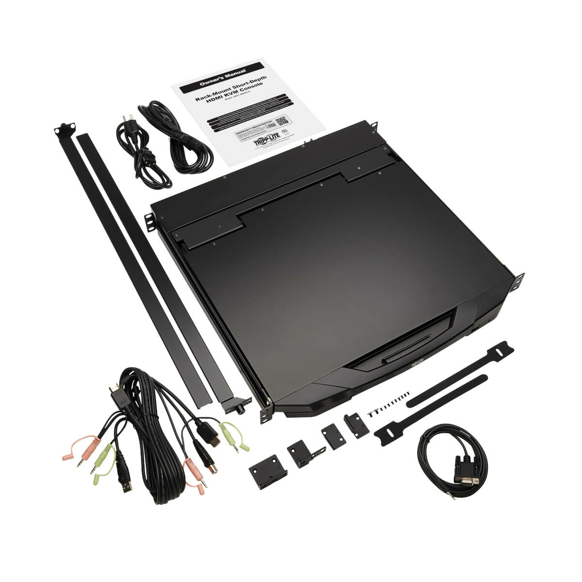 Tripp Lite B021-SWHD-K. Beeldschermdiagonaal: 47 cm (18.5"), Resolutie: 1920 x 1080 Pixels. Aansluiting toetsenbord: USB, Aansluiting muis: USB, Aansluiting video: HDMI. AC-adapter ingangsspanning: 100 - 240 V, AC-adapterfrequentie: 50/60 Hz, Stroom: 1 A. Breedte: 477 mm, Hoogte: 480,6 mm, Diepte: 42,9 mm. Gewicht verpakking: 13,9 kg, Breedte verpakking: 830 mm, Diepte verpakking: 670 mm