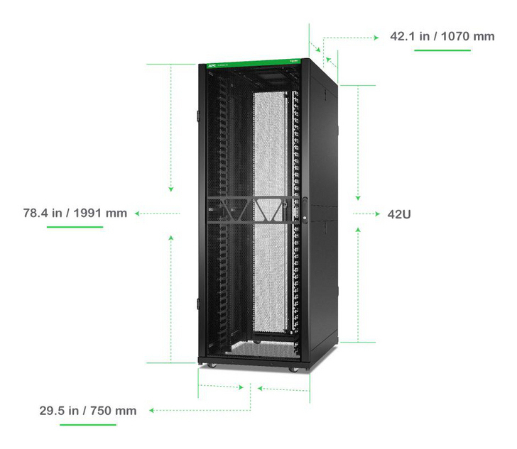 NetShelter SX Networking Enclosure, 42U, 1991H x 750W x 1070D mm, wtih Sides, Black