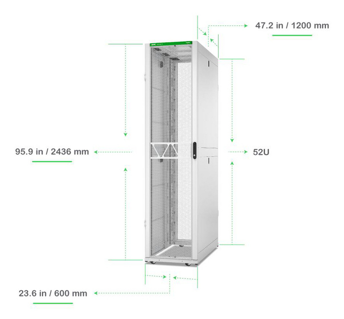 NetShelter SX, Server Rack Enclosure, Gen 2, 52U, 2436H x 600W x 1200D mm, White
