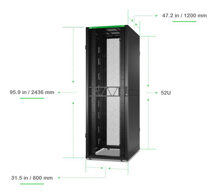 NetShelter SX, Server Rack Enclosure, Gen 2, 52U, 2436H x 800W x 1200D mm, with Sides, Black