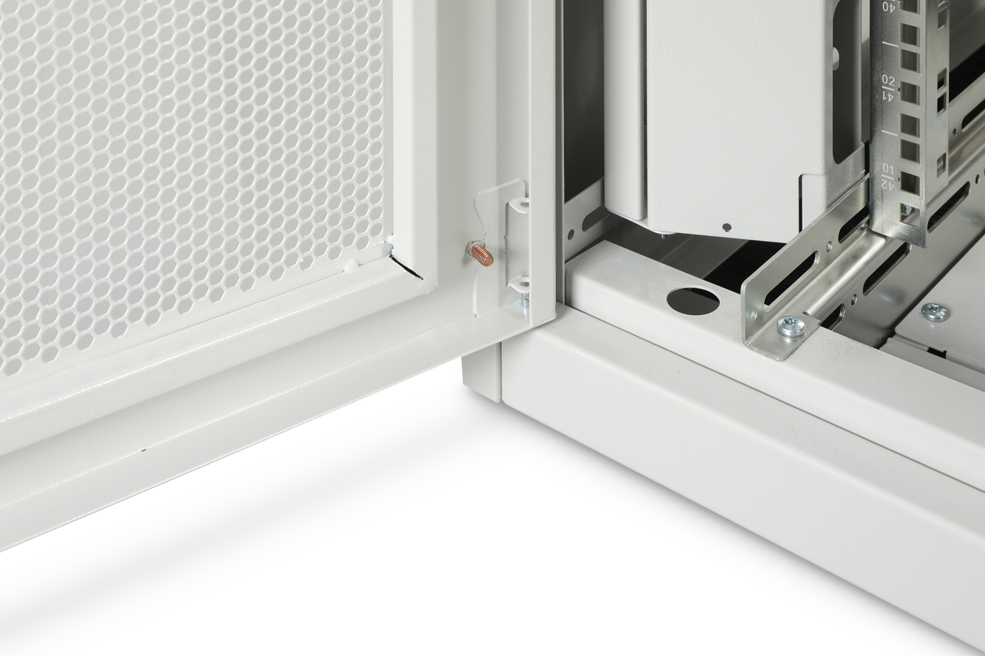 Digitus DN-31117. Soort: Vrijstaande rek, Rackcapaciteit: 42U, Maximale gewichtscapaciteit: 800 kg, Sleutelsleuf, Verstelbare voeten, Verbeterd kabelbeheer, Rekrails, Internationale veiligheidscode (IP): IP20. Gewicht: 154 kg. Kleur van het product: Grijs