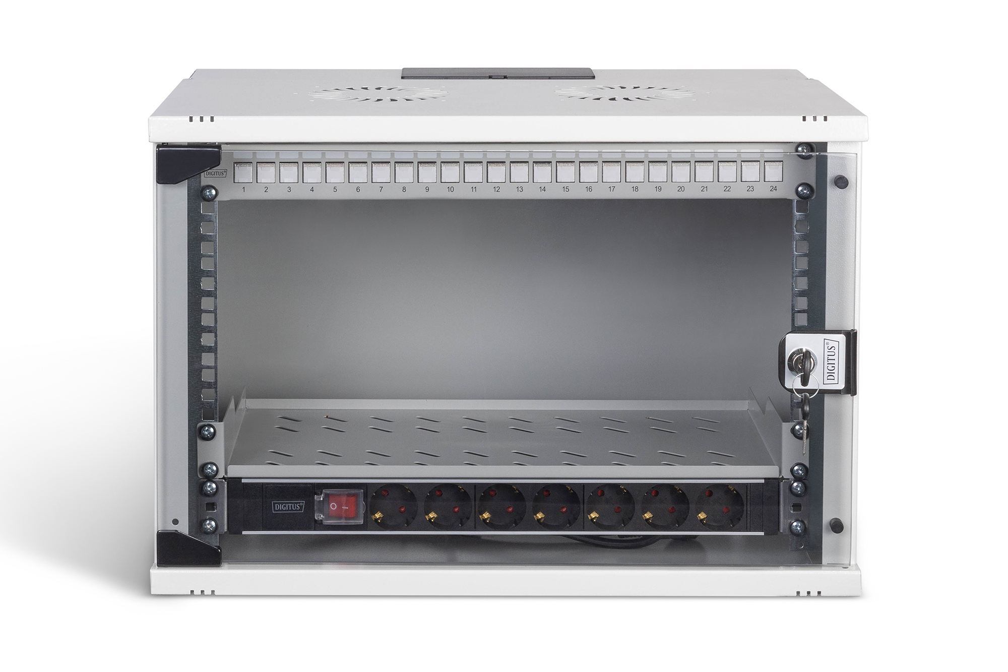 Digitus DN-49202-SET, Wandrek, 7U, 60 kg, Sleutelsleuf, Rekrails, Verbeterd kabelbeheer