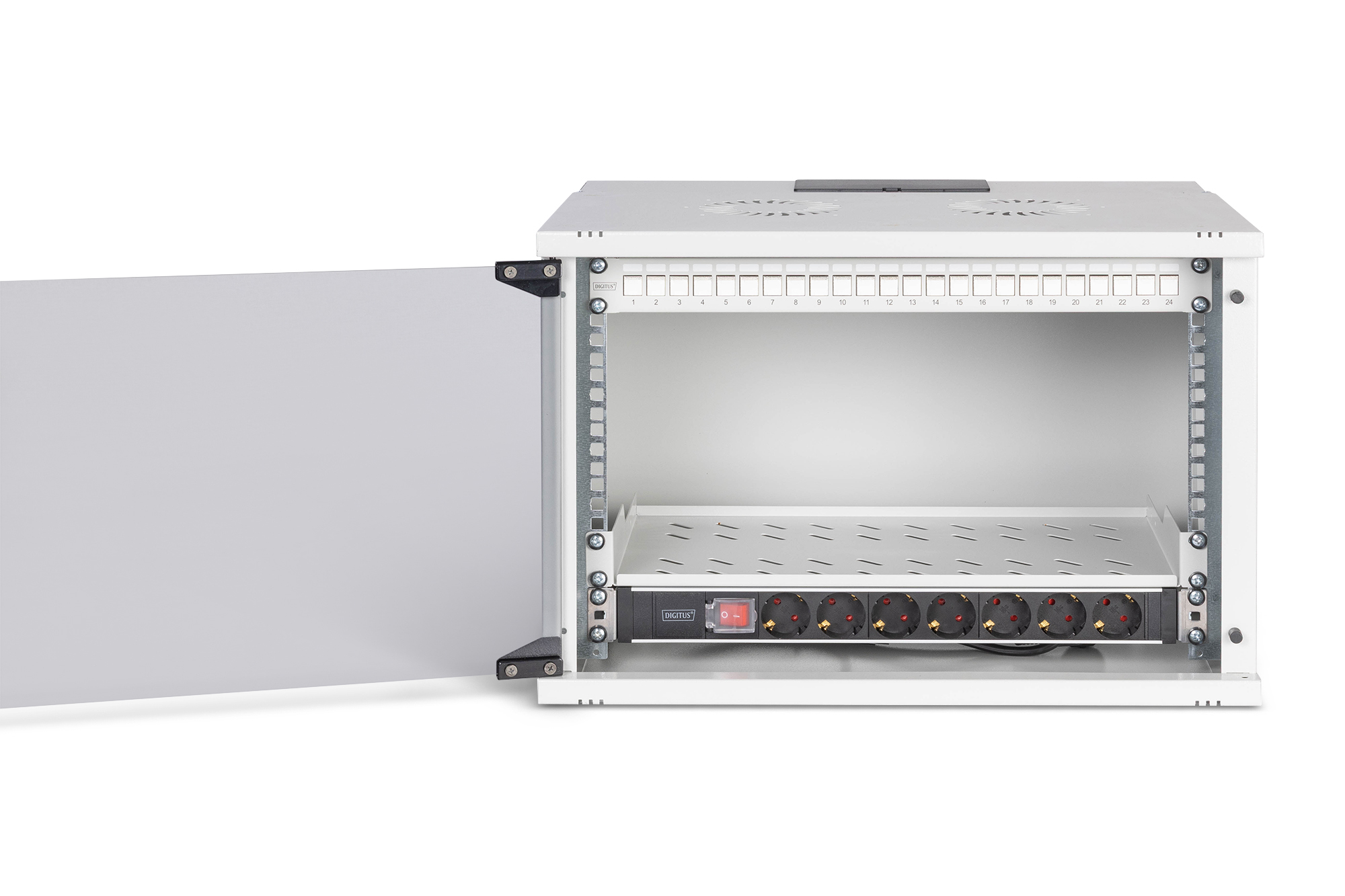 Digitus DN-49202-SET. Soort: Wandrek, Rackcapaciteit: 7U, Maximale gewichtscapaciteit: 60 kg, Sleutelsleuf, Verbeterd kabelbeheer, Rekrails, Internationale veiligheidscode (IP): IP20. Gewicht: 11,5 kg. Kleur van het product: Grijs