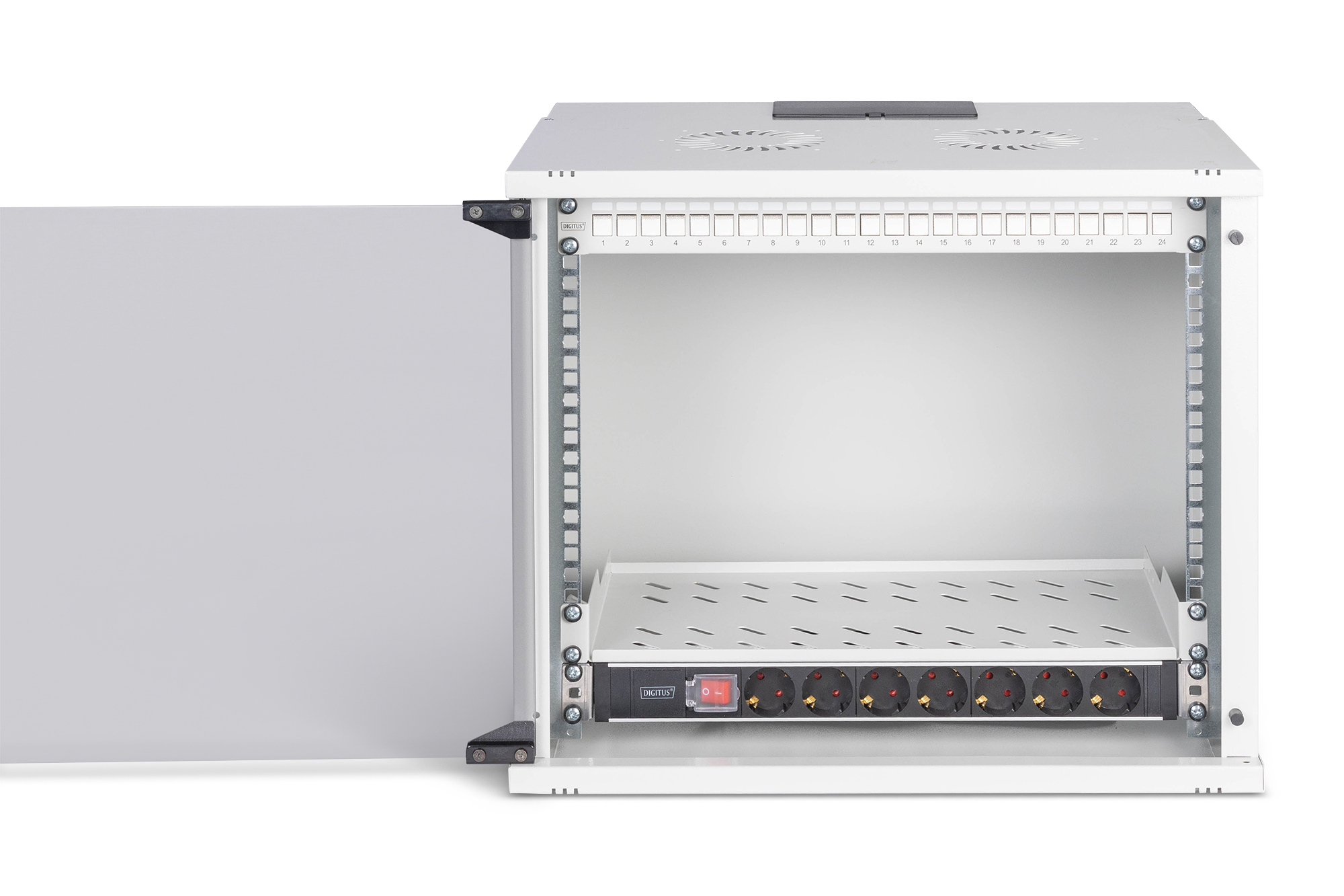 Digitus DN-49204-SET, Wandrek, 9U, 60 kg, Sleutelsleuf, Rekrails, Verbeterd kabelbeheer