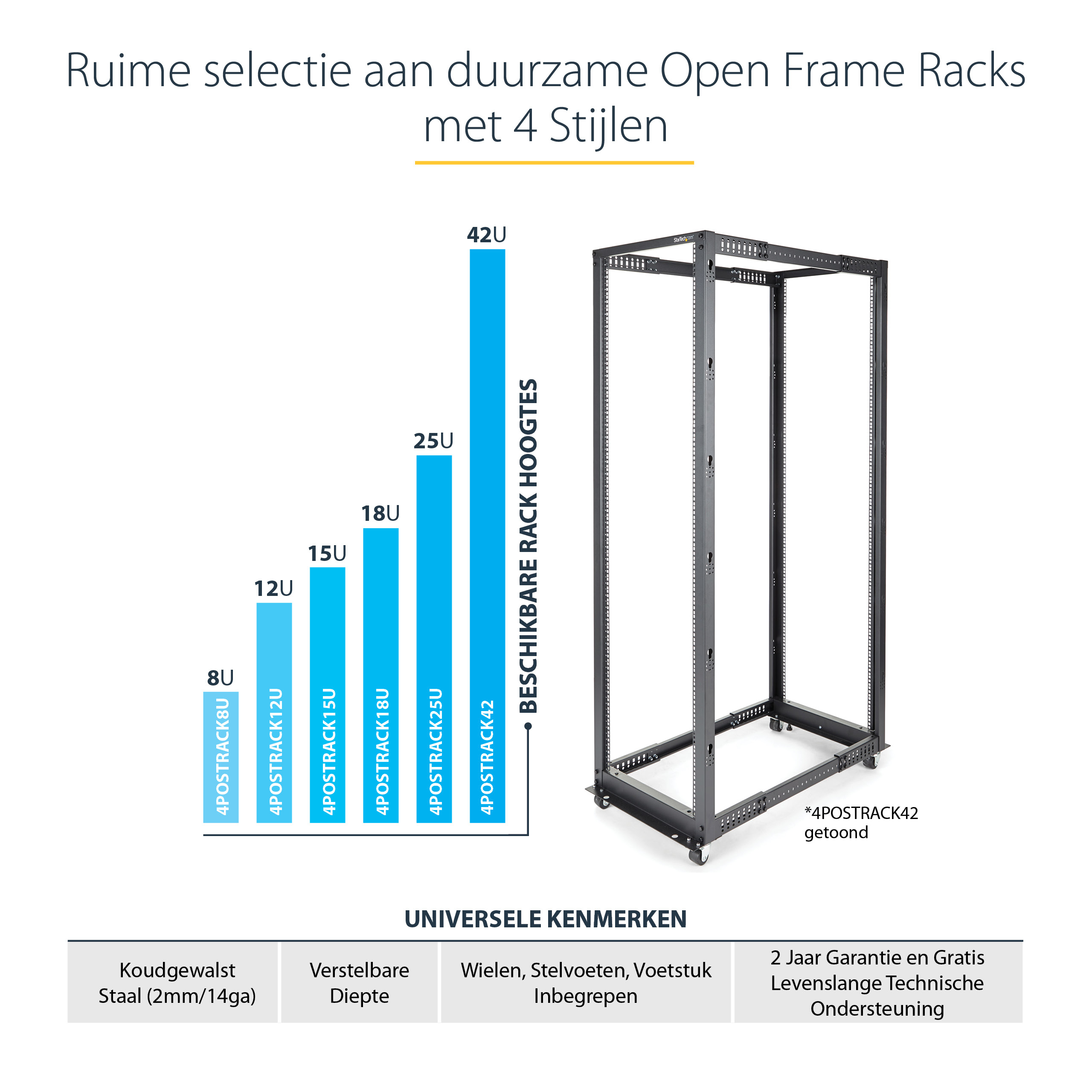 Installeer uw servers, netwerk- en telecommunicatieapparatuur in dit verstelbare 25U open-frame rack