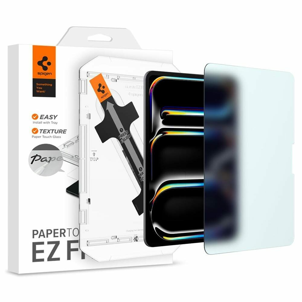 Spigen Paper Touch EZ Fit. Type schermbeschermer: Papierachtige schermbeschermer, Maximale schermgrootte: 27,9 cm (11"), Oppervlakteafwerking: Mat, Merkcompatibiliteit: Apple, Compatibiliteit: iPad Pro 11-inch 2024/M4 (5th Gen). Aantal per verpakking: 1 stuk(s)