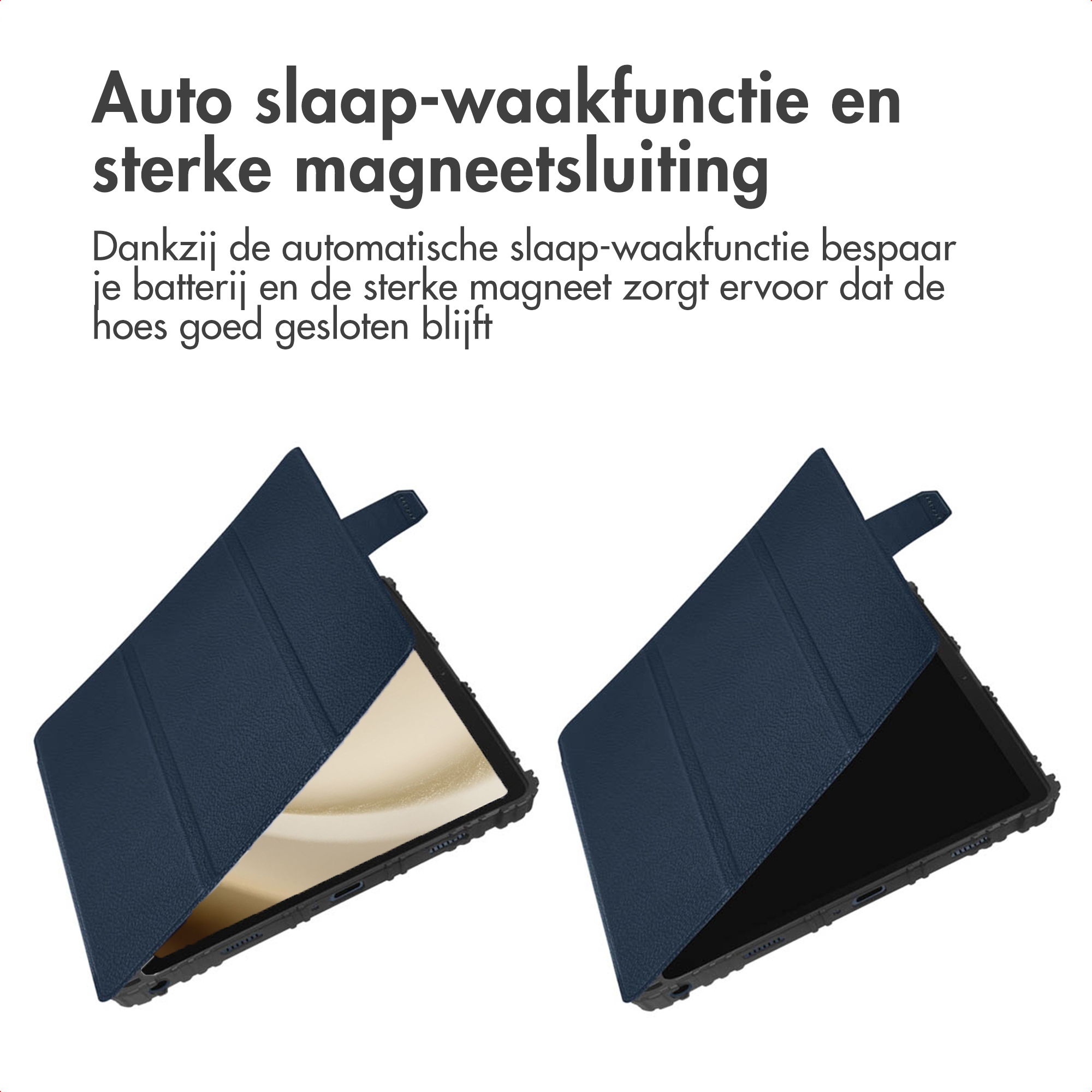 Handige standaard voor elke situatieOf je nu een serie kijkt, een presentatie geeft of videobelt: met de verstelbare standaard zet je je tablet altijd in de perfecte kijkhoek. De trifold cover vouw je eenvoudig om tot een stabiele standaard, zodat je handen vrij blijven en je comfortabel kunt genieten van je content. Zo haal je alles uit je tablet, waar je ook bent.