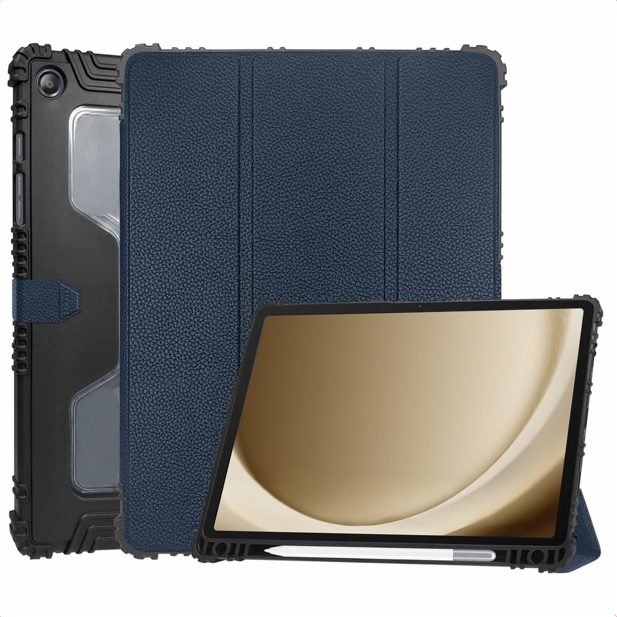 Rugged Trifold Bookcase Samsung Galaxy Tab A9 Plus - Donkerblauw