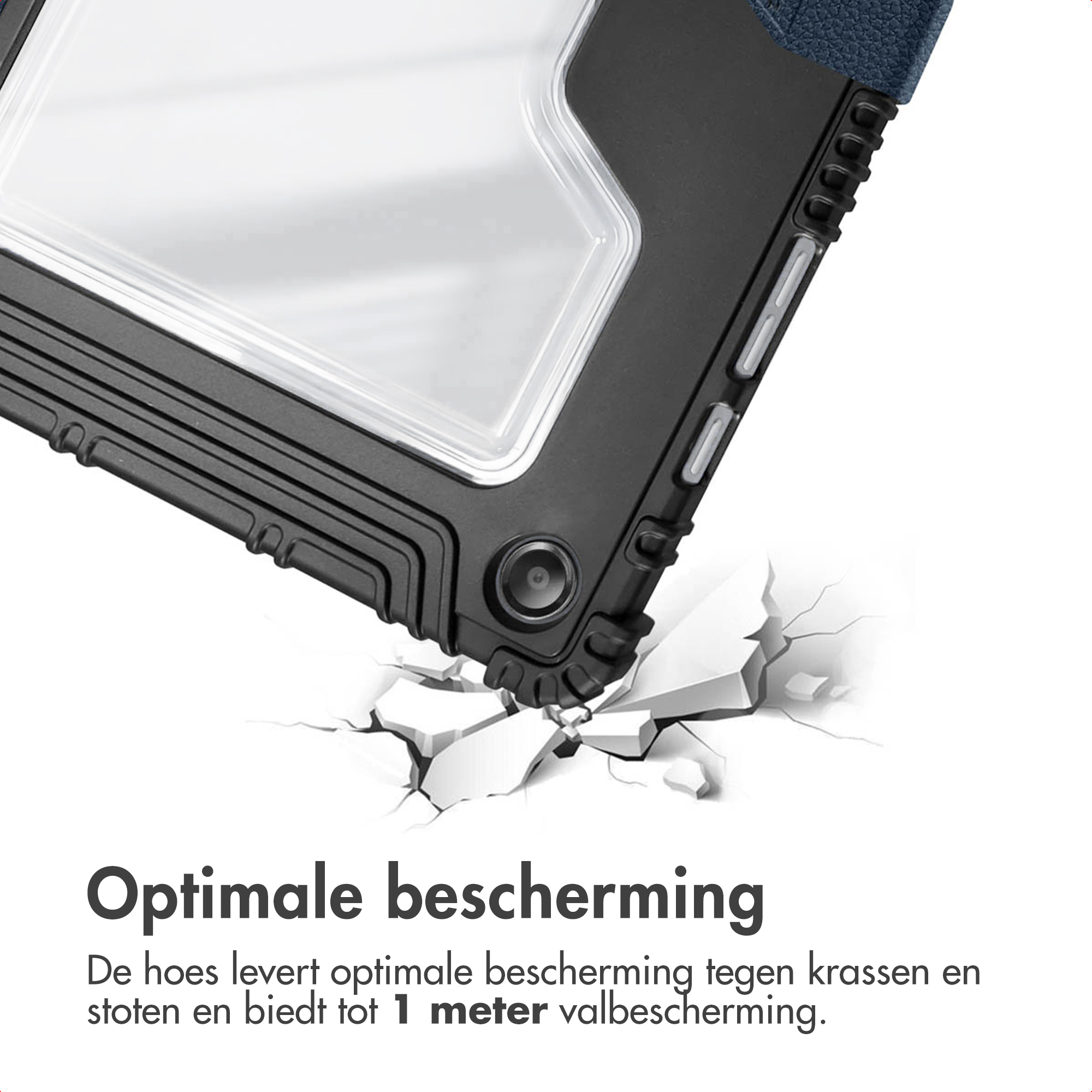Dankzij het hoogwaardige kunstleder en de transparante achterkant blijft het design van je tablet mooi zichtbaar, terwijl je toestel optimaal beschermd is tegen vallen tot wel 1 meter hoogte. De hoes is voorzien van een handige standaard, waardoor je altijd comfortabel kunt werken, lezen of ontspannen. Valbescherming tot 1 meterMet de Accezz Rugged Trifold Bookcase hoef je je geen zorgen te maken over ongelukjes.